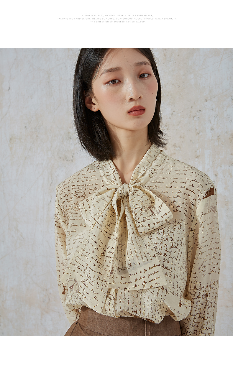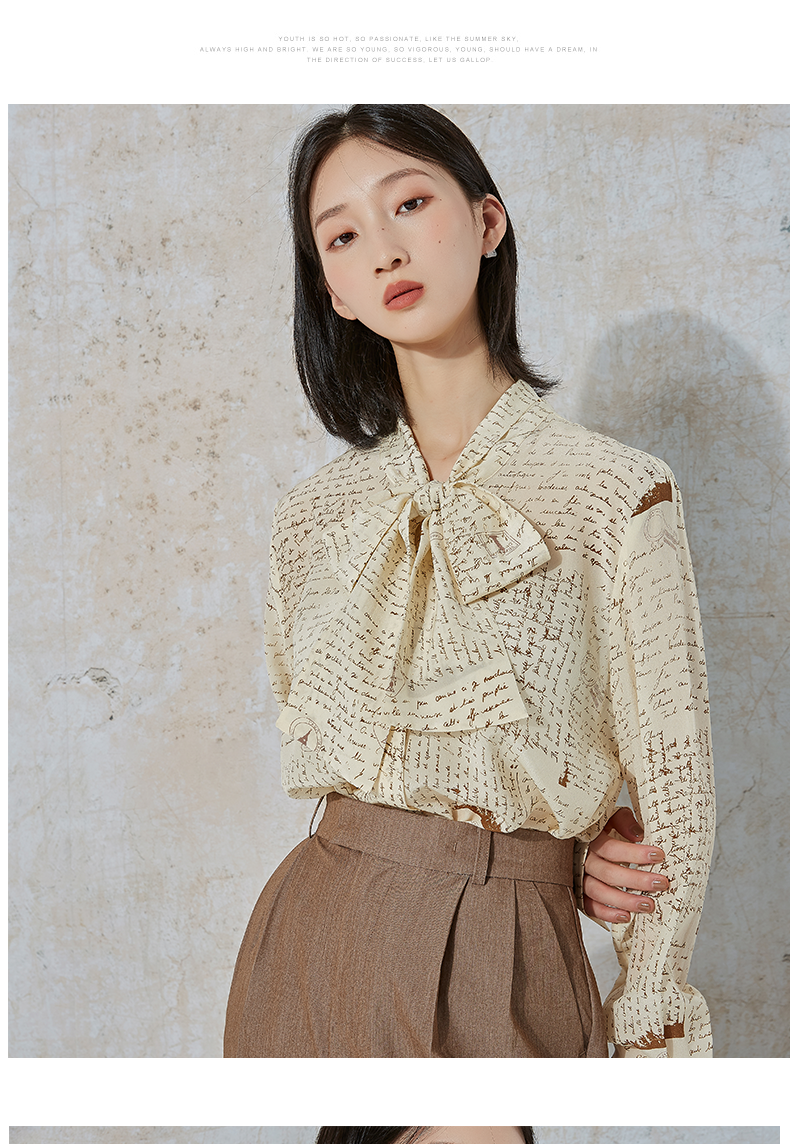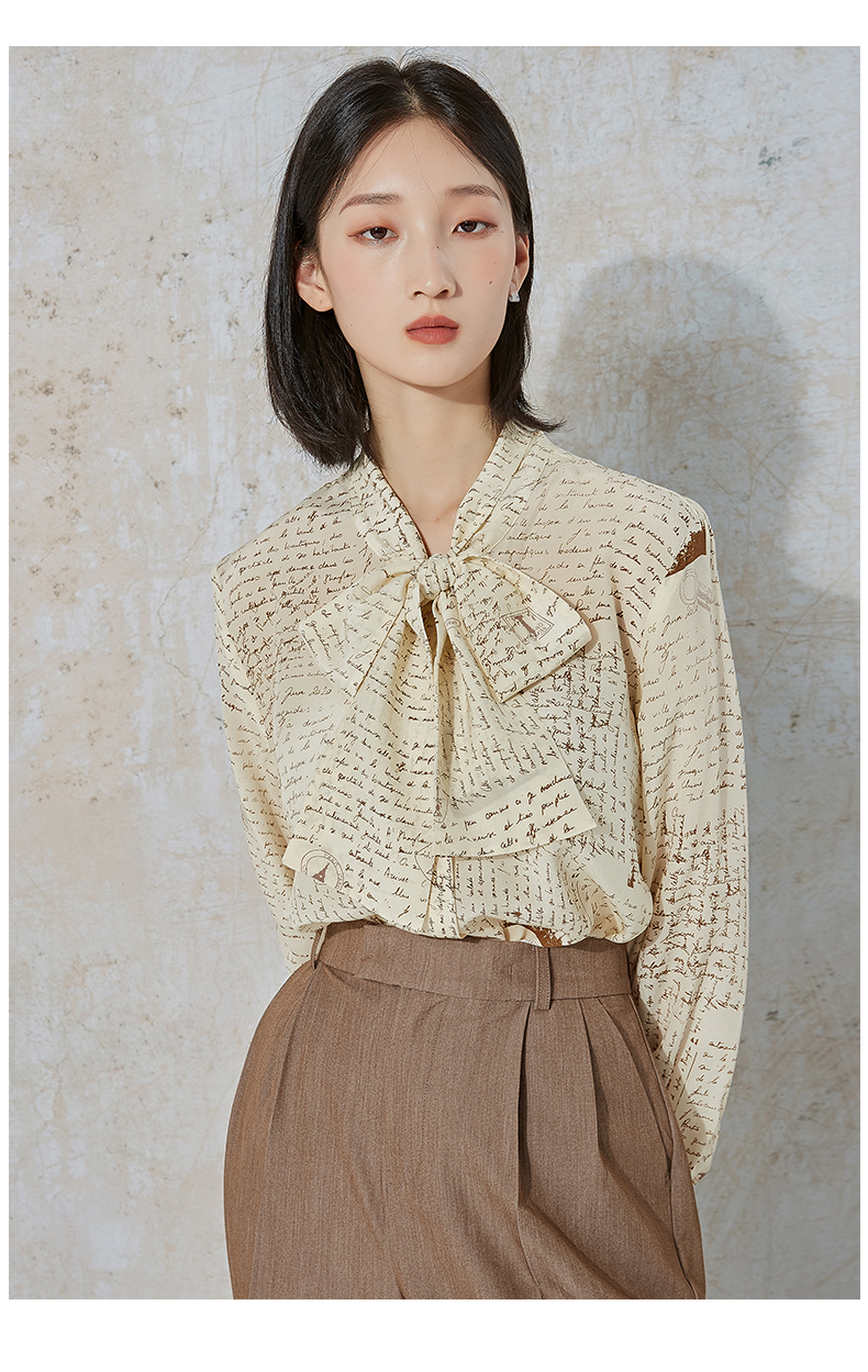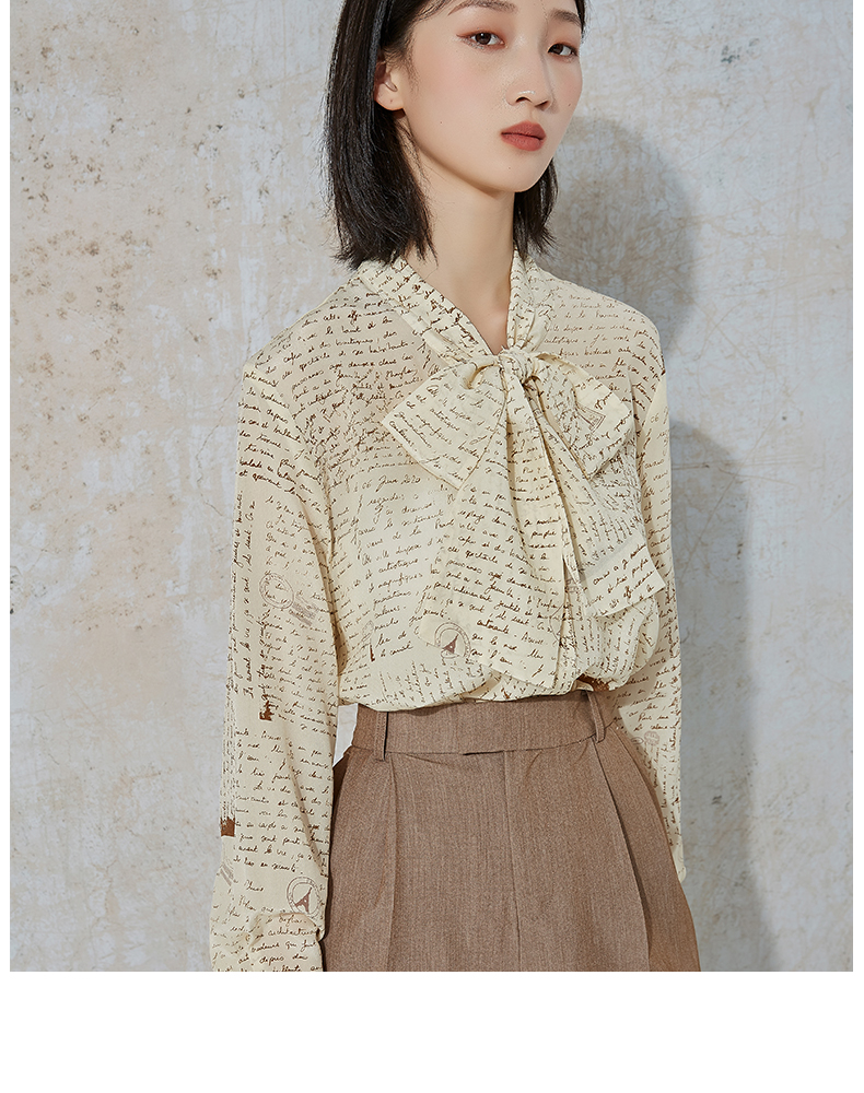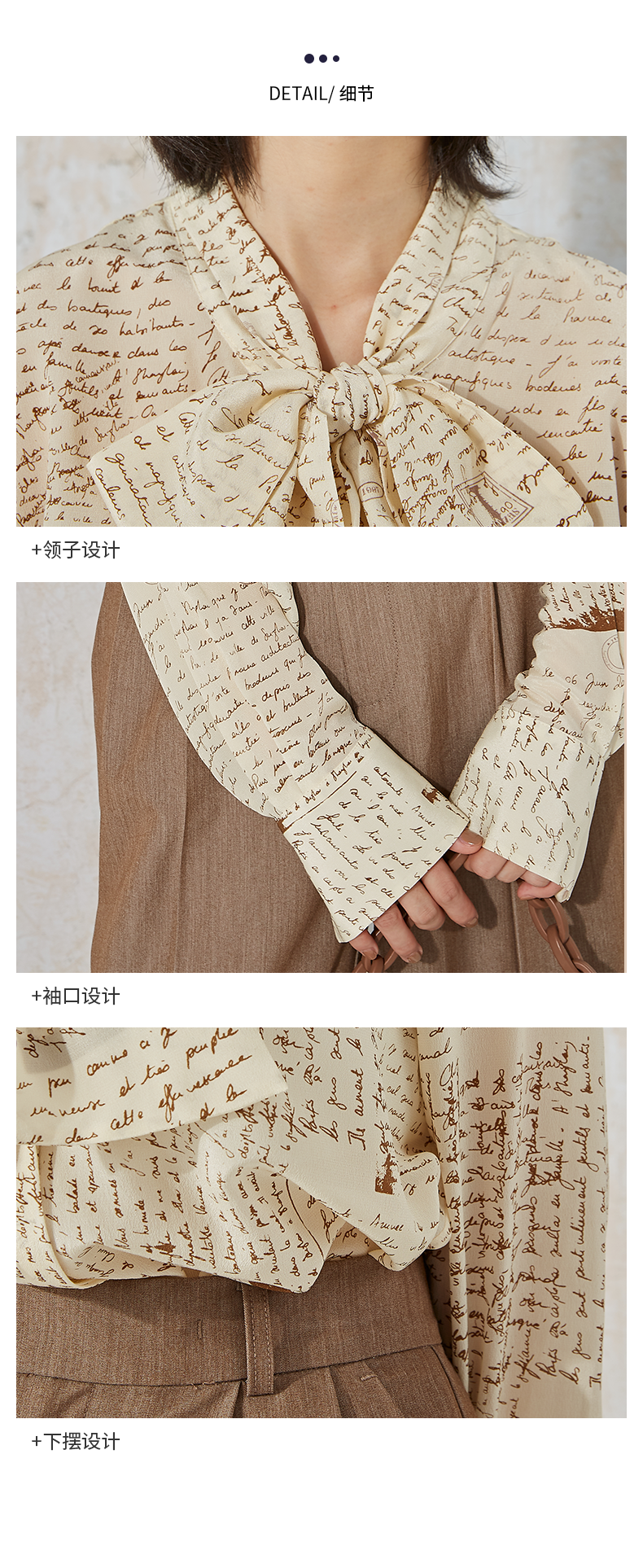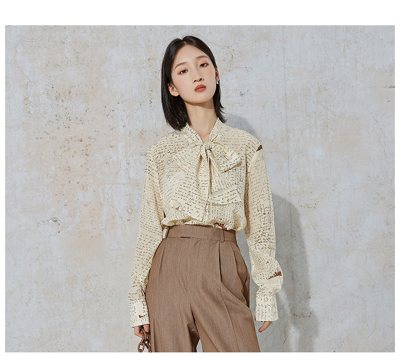 NUTS秋季新款时尚气质设计感复古图案宽松显瘦长袖衬衫231013017B