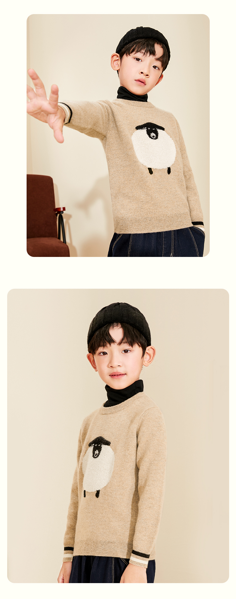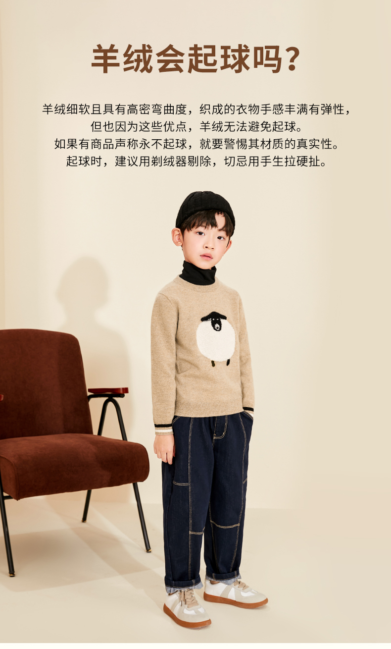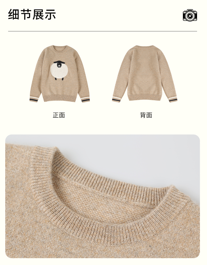 【卡通图案童装羊绒衫】羊绒世家22年秋冬新品儿童毛衣可爱卡通图案保暖毛衣