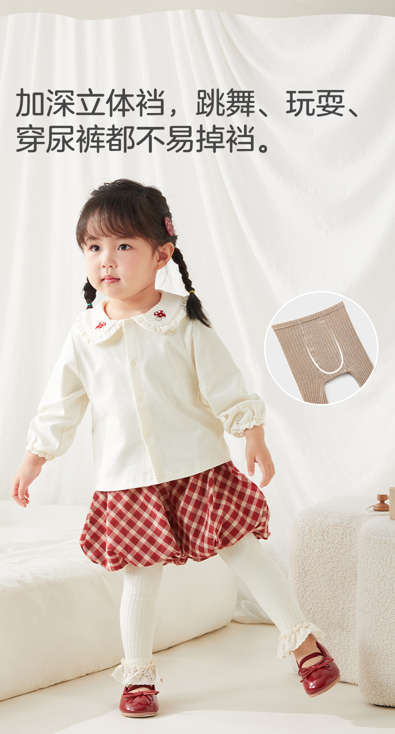 粒粒阳光女童连裤袜秋季外穿长绒棉宝宝打底裤袜儿童袜子