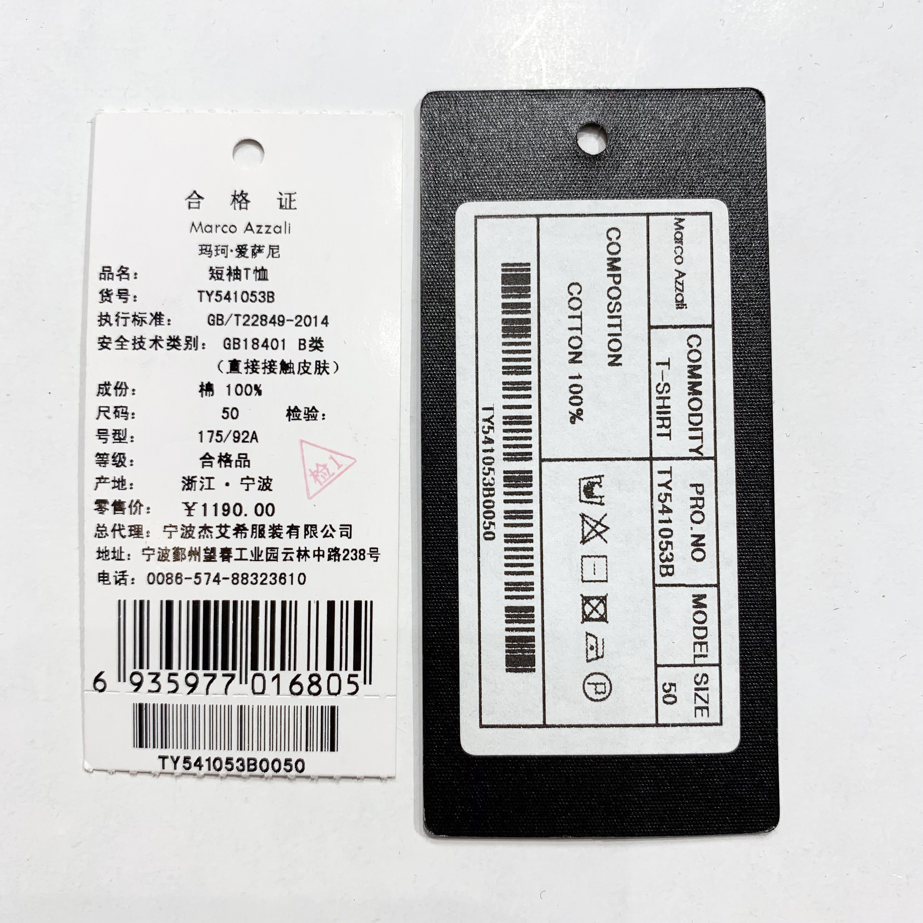 Marco Azzali白色短袖T恤 TY541053B