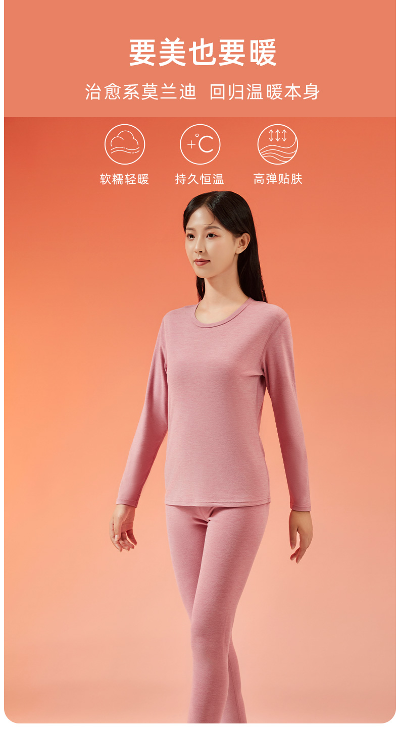 爱帝女士蓄热暖绒圆领保暖内衣套装