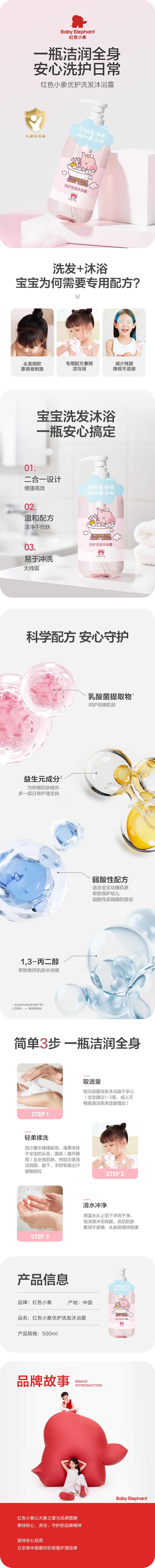 红色小象优护洗发沐浴露二合一新款 500ml 儿童幼儿婴儿宝宝洗澡洗头专用-4316