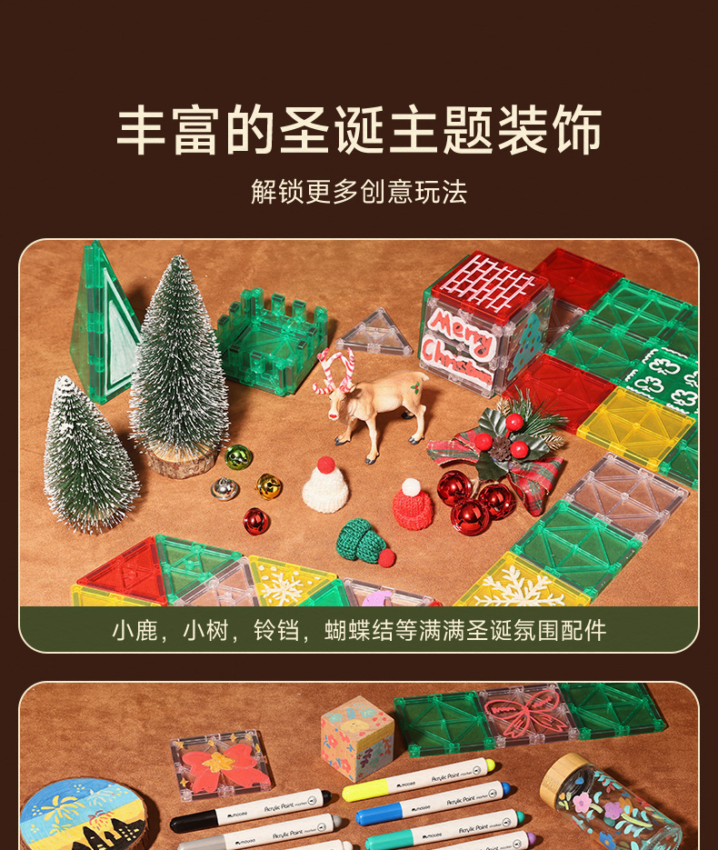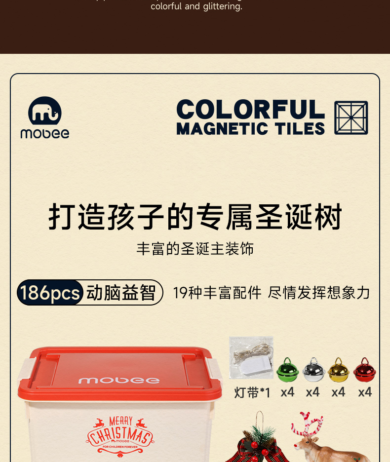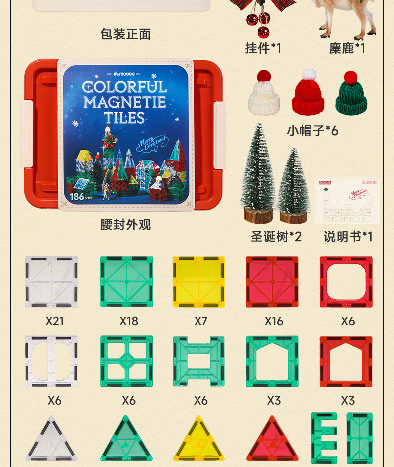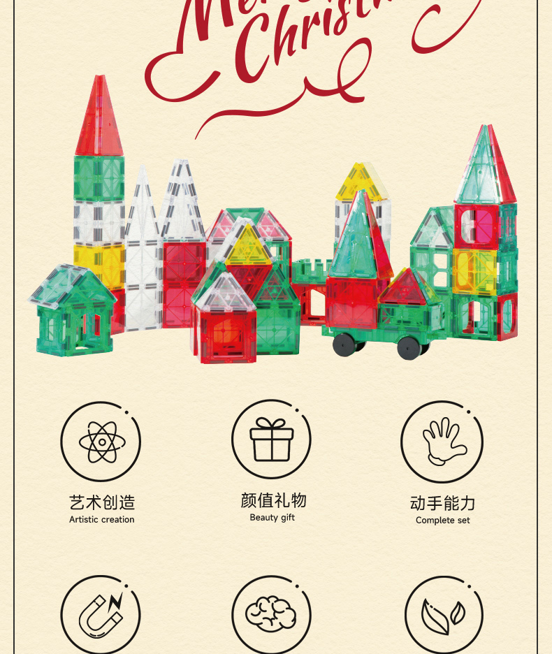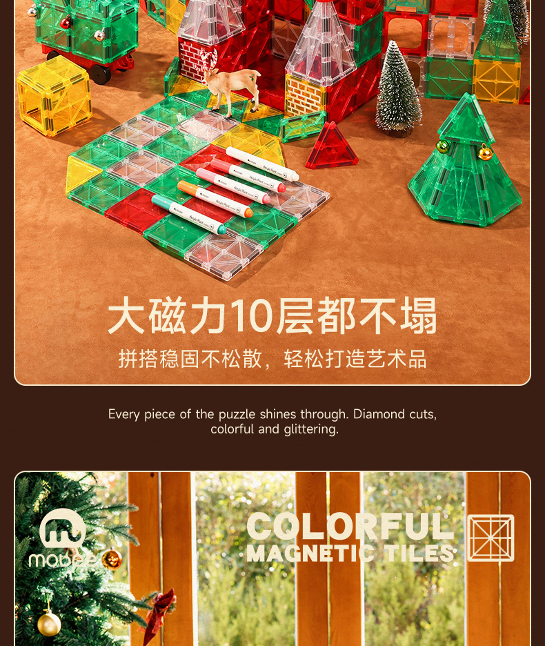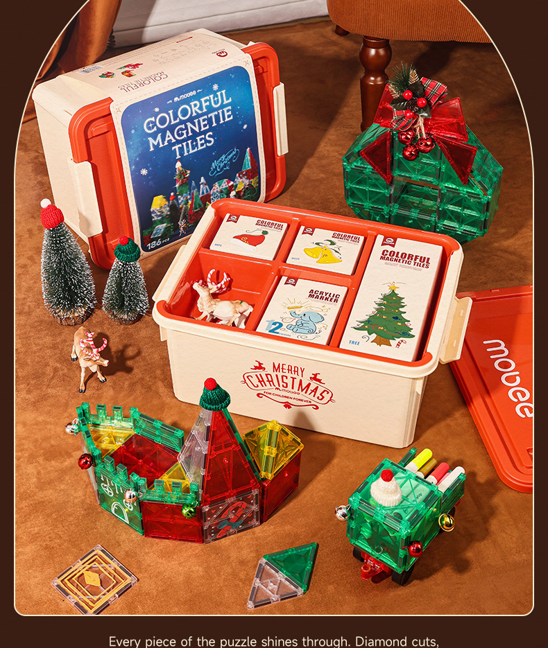 【云优选】mobee圣诞小镇磁力片儿童磁力片益智玩具儿童积木拼装男女孩方块mobee圣诞小镇磁力片圣诞礼物儿童礼物-186PCS