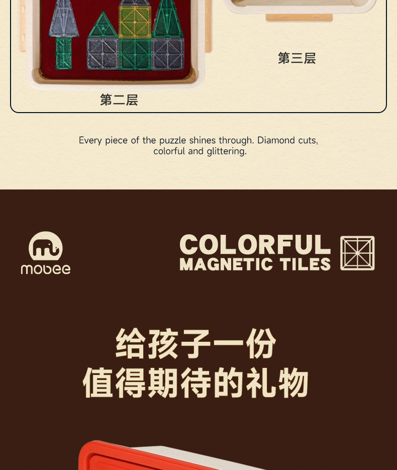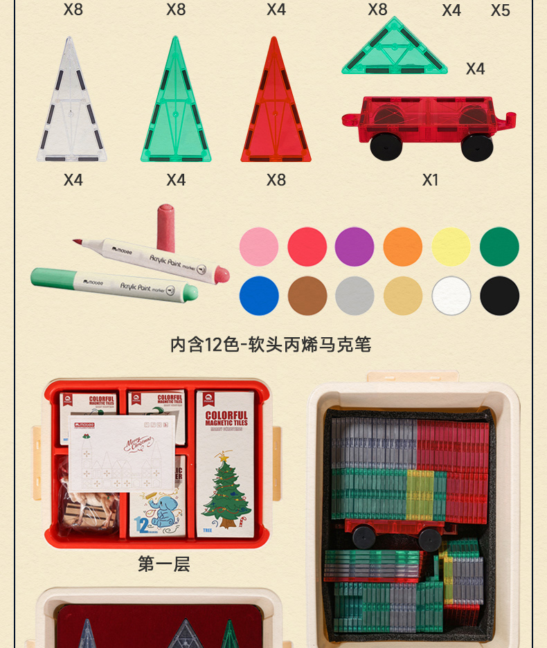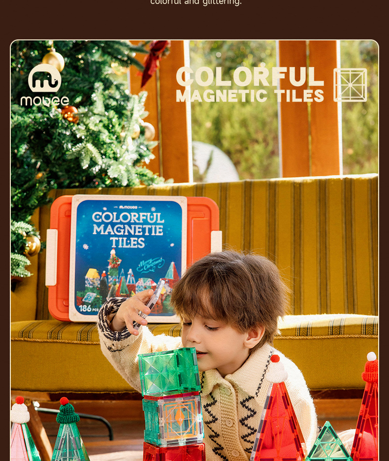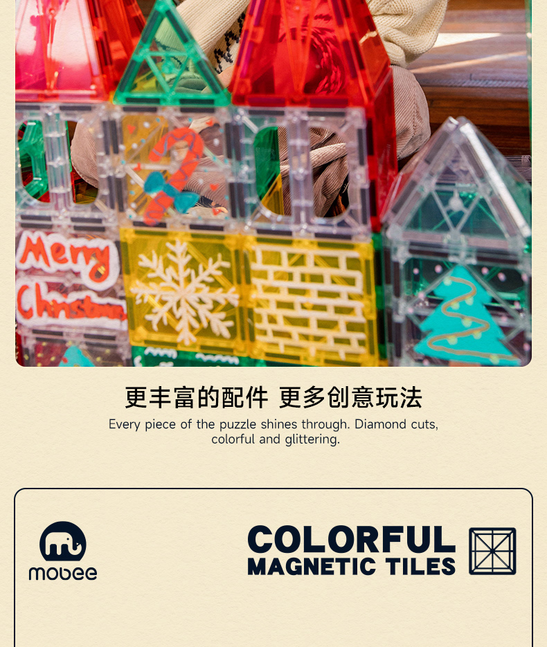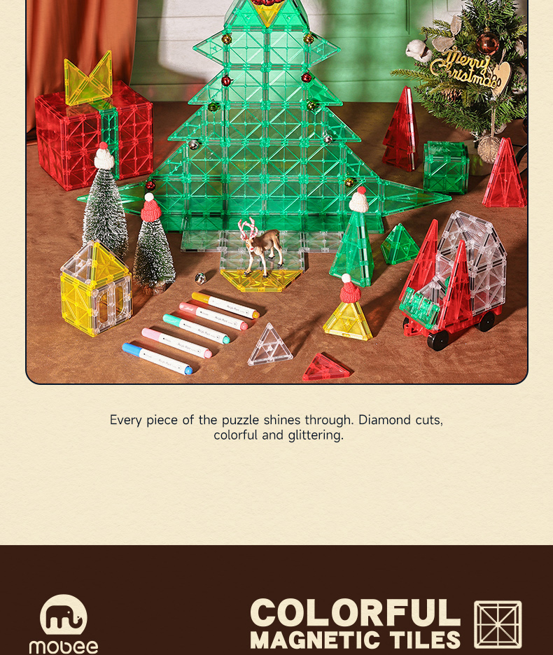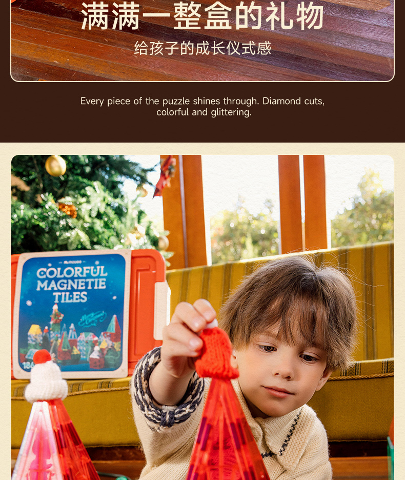 【云优选】mobee圣诞小镇磁力片儿童磁力片益智玩具儿童积木拼装男女孩方块mobee圣诞小镇磁力片圣诞礼物儿童礼物-186PCS