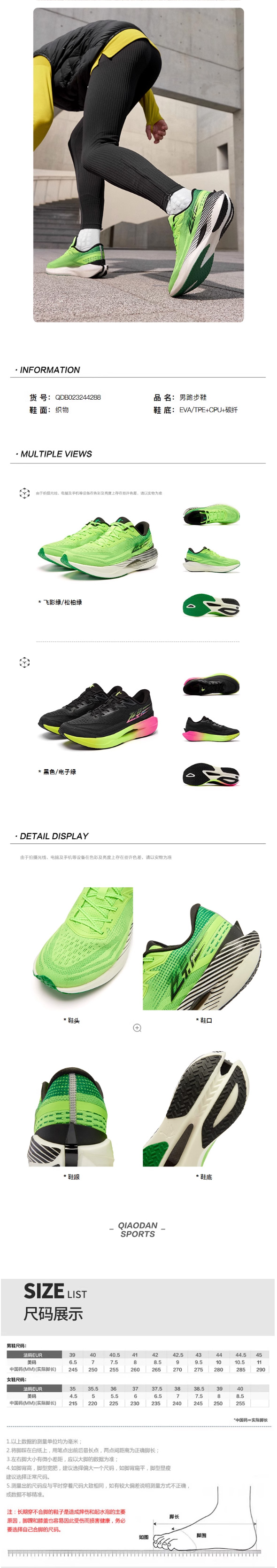 乔丹飞影Pro2竞速碳板马拉松轻便透气跑步鞋男款QDB023252288