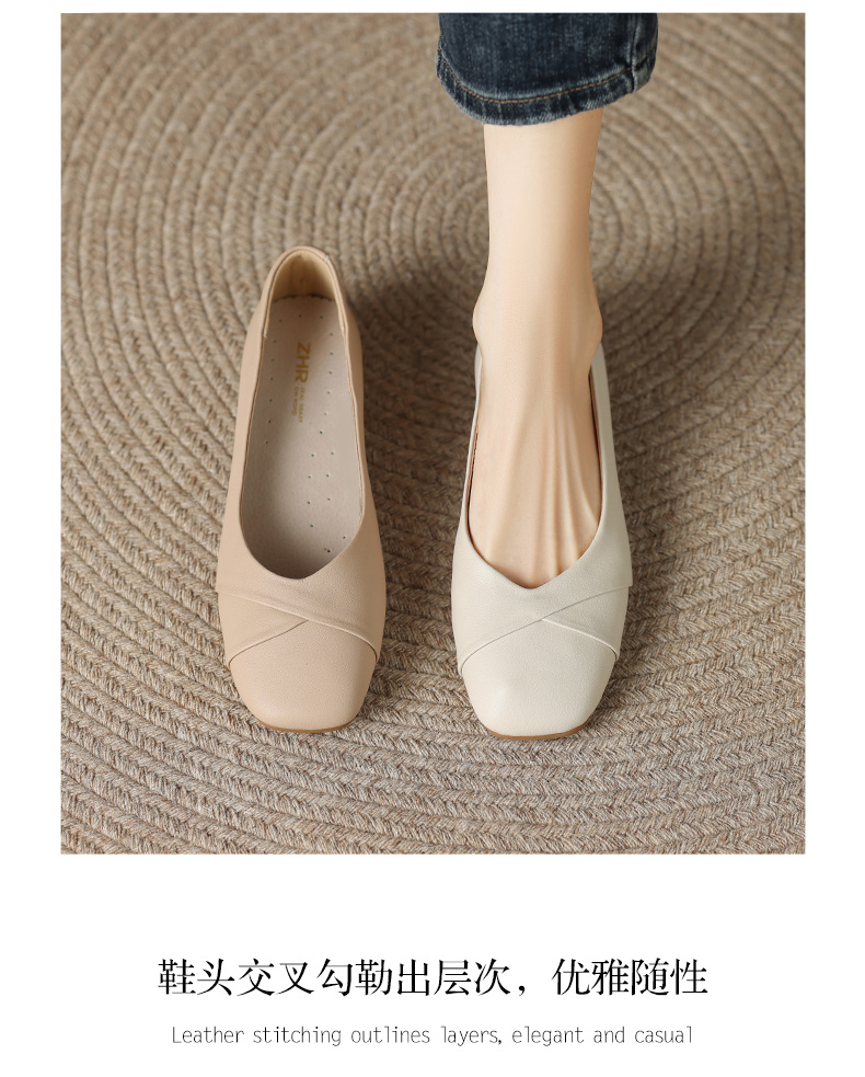 ZHR浅口单鞋女2023新款一脚蹬轻便软底豆豆鞋韩版百搭休闲乐福鞋