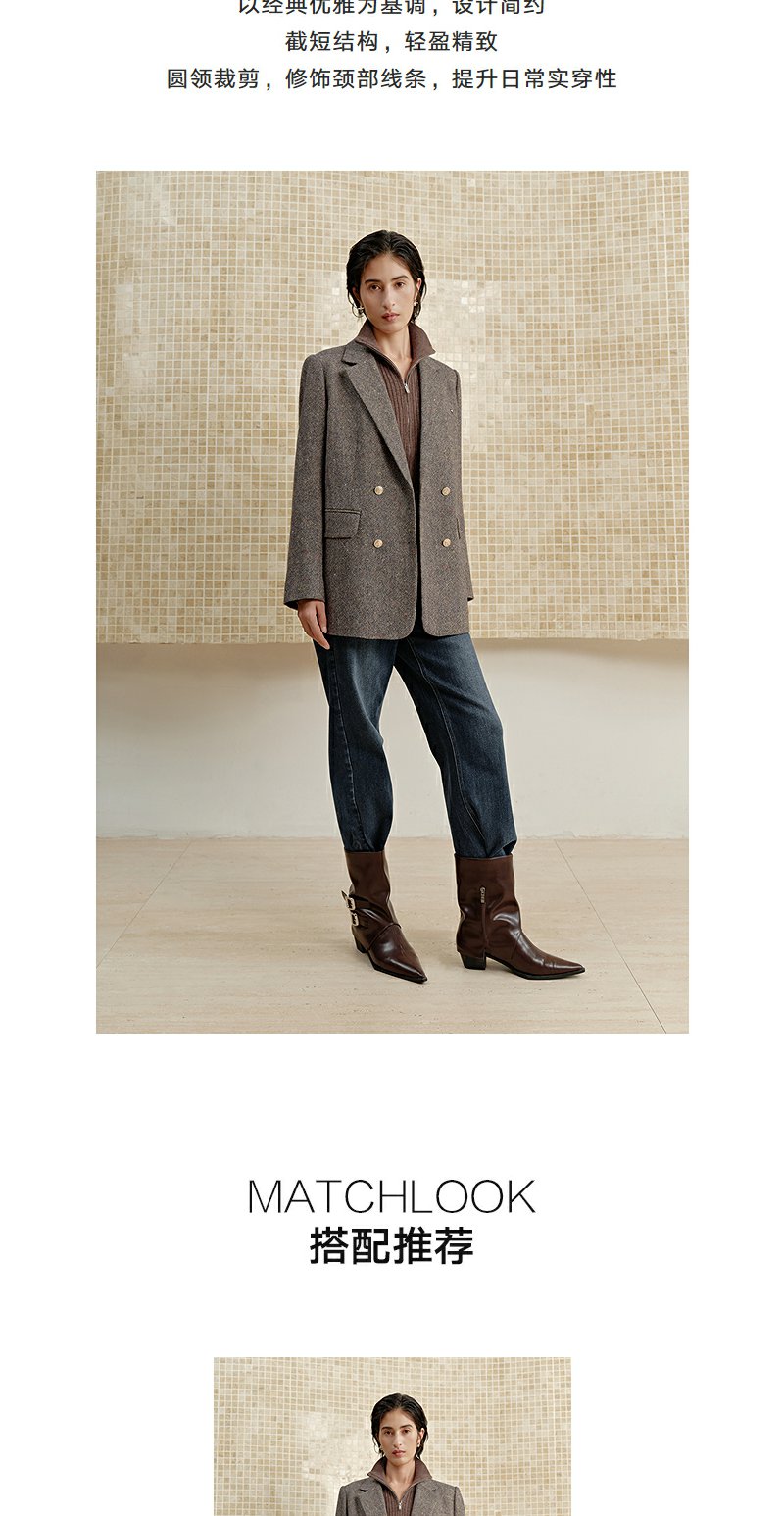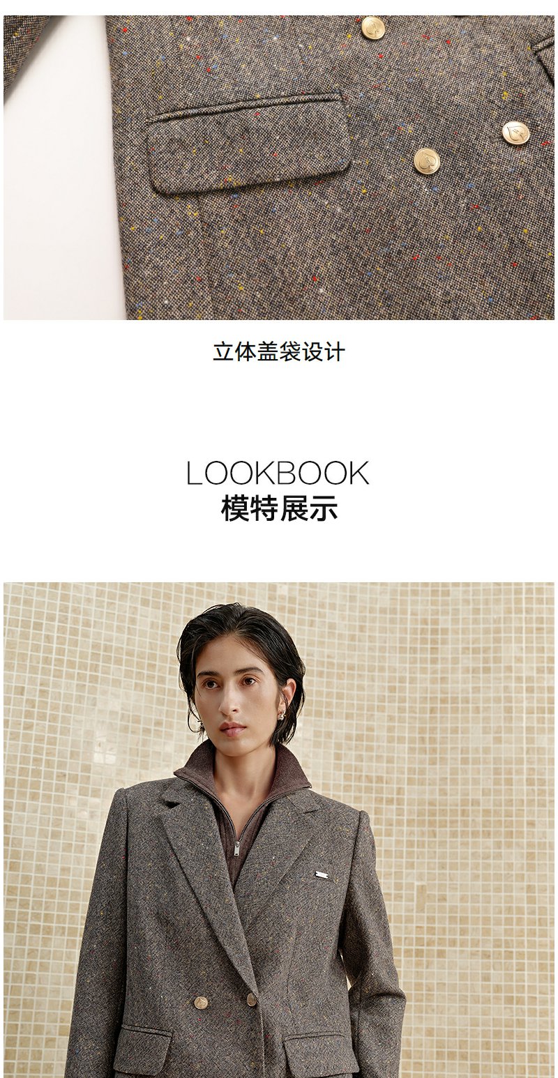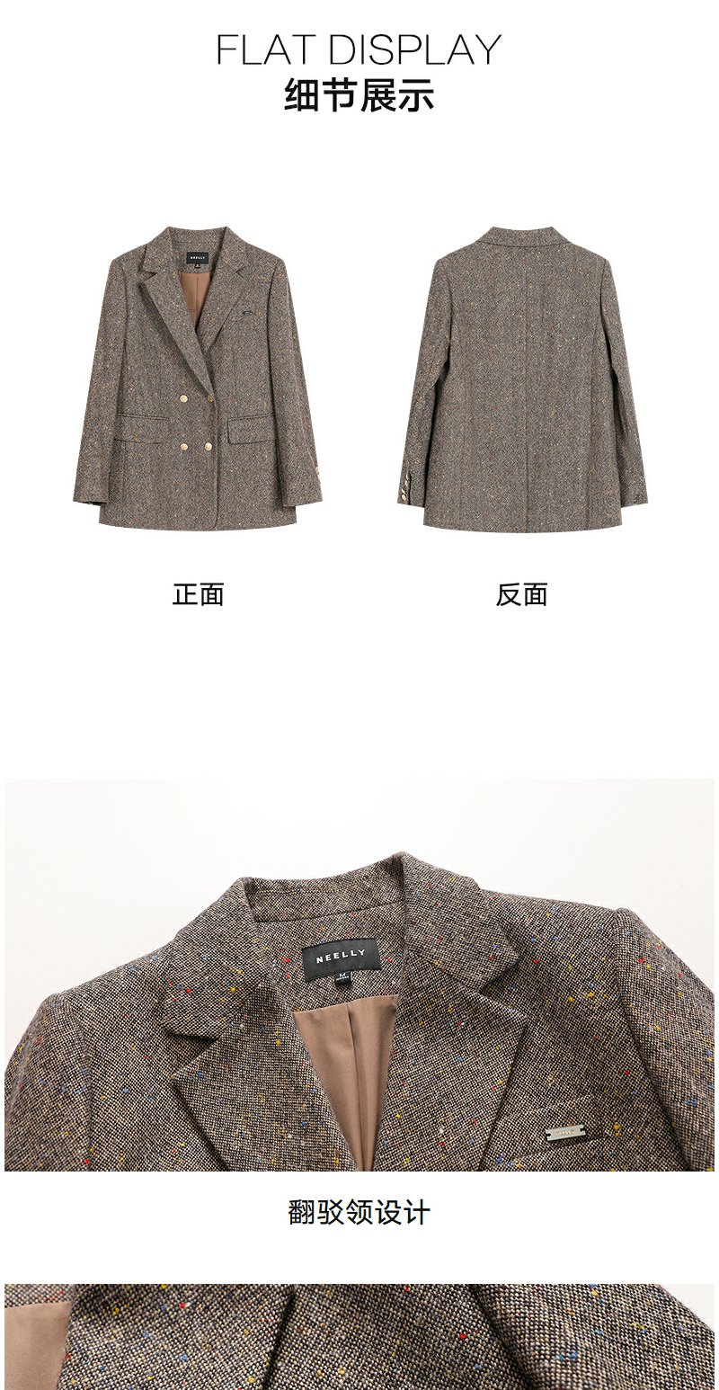 NEELLY纳俪商场同款冬季新款复古粗花呢西装外套女优雅实穿上衣N25102W01037