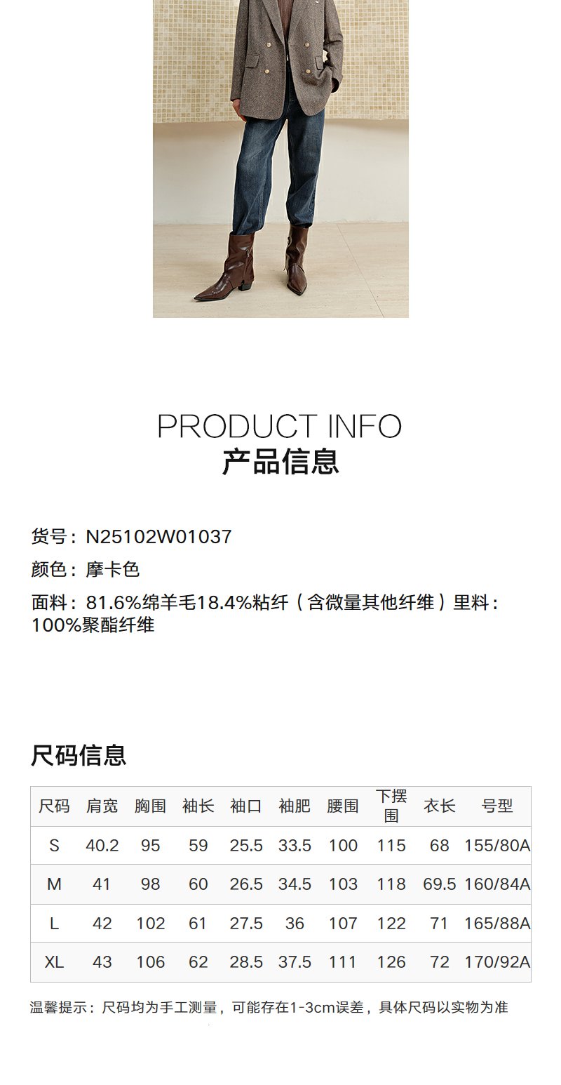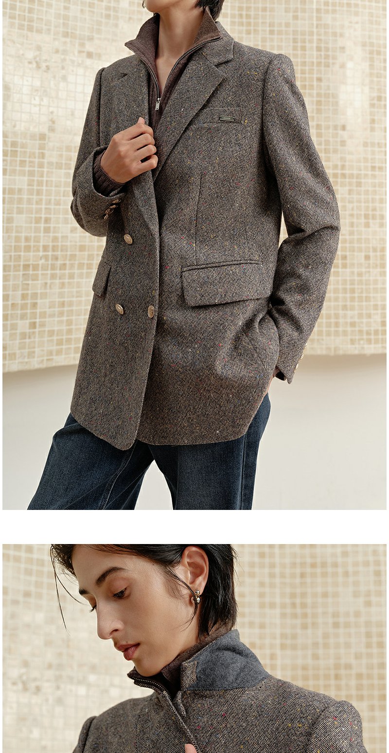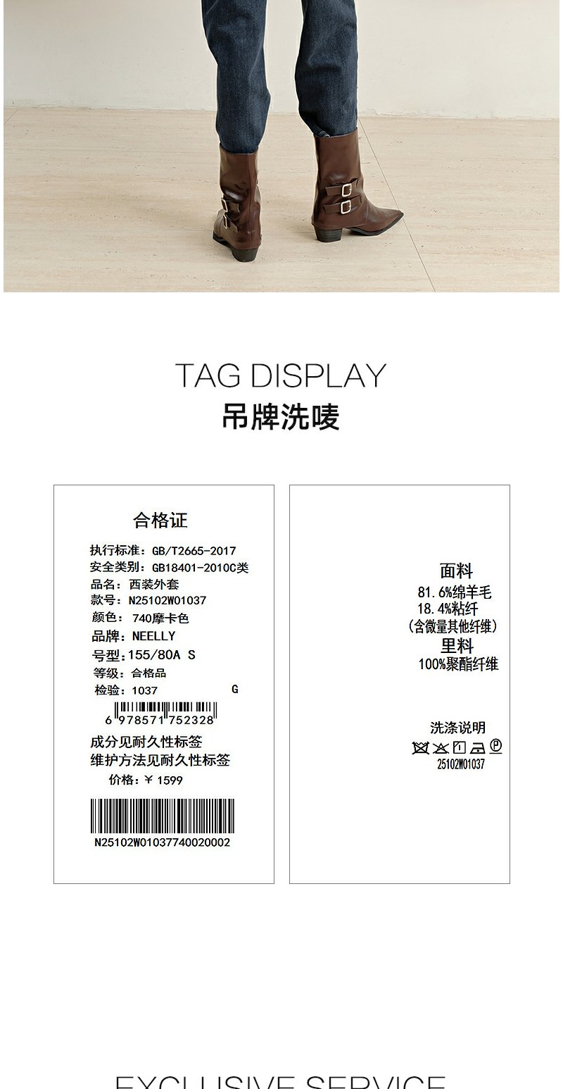 NEELLY纳俪商场同款冬季新款复古粗花呢西装外套女优雅实穿上衣N25102W01037