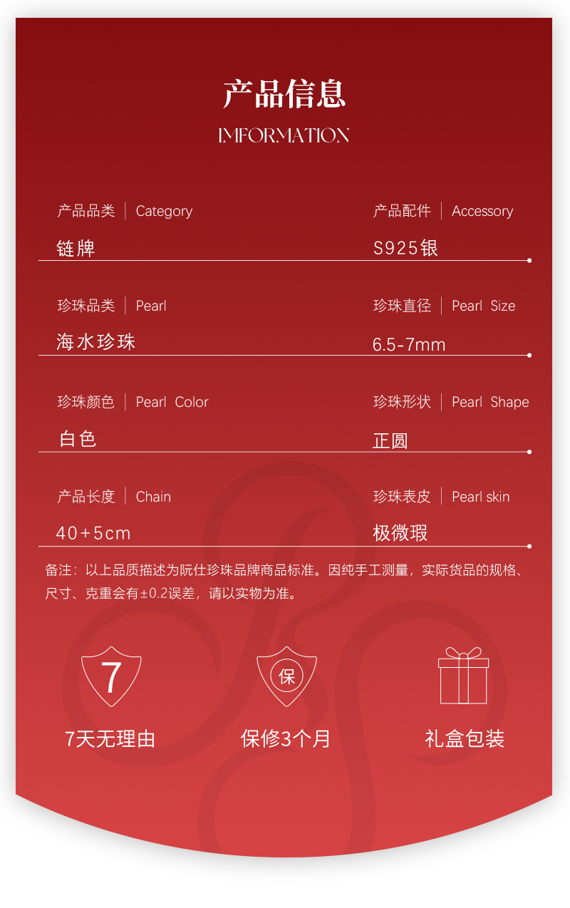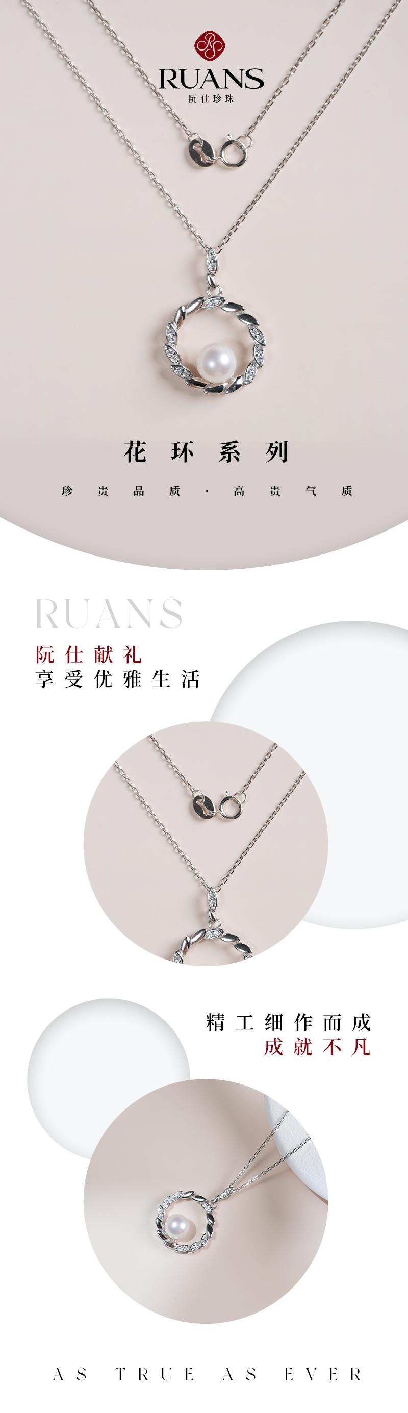 【阮仕珍珠】阮仕花环系列S925银 Akoya珍珠链牌 6.5-7mm