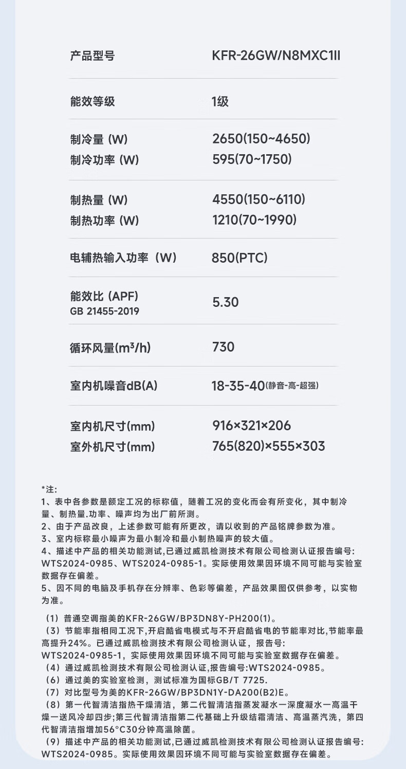 美的空调挂机 风尊二代_KFR-26GW/N8MXC1Ⅱ