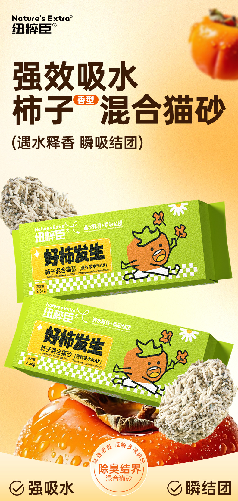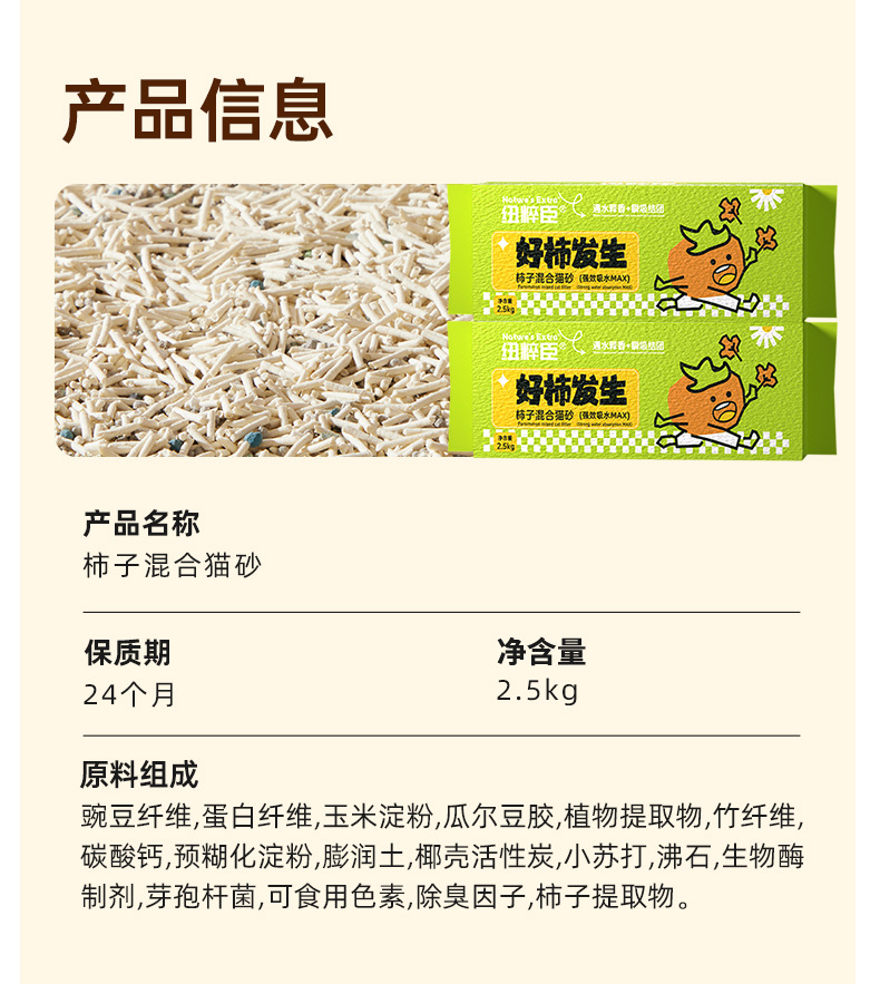 【猫砂】纽粹臣 柿子混合猫砂2.5kg 抑菌除臭 粉尘少 试用好评率100% 线下专供 电商禁售