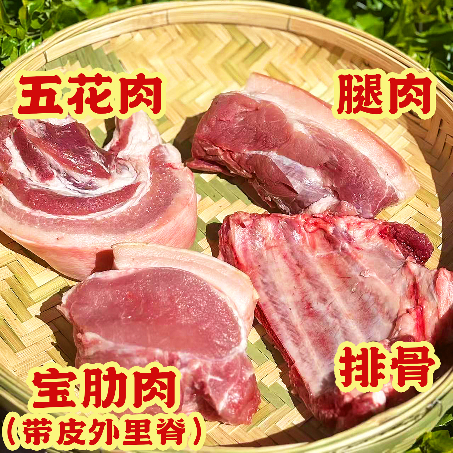 肉根据部位分为4种:五花肉(猪腩肉),宝肋肉(带皮的外里脊肉),排骨,腿肉。如需其他部位,请联系微信客服为您安排!