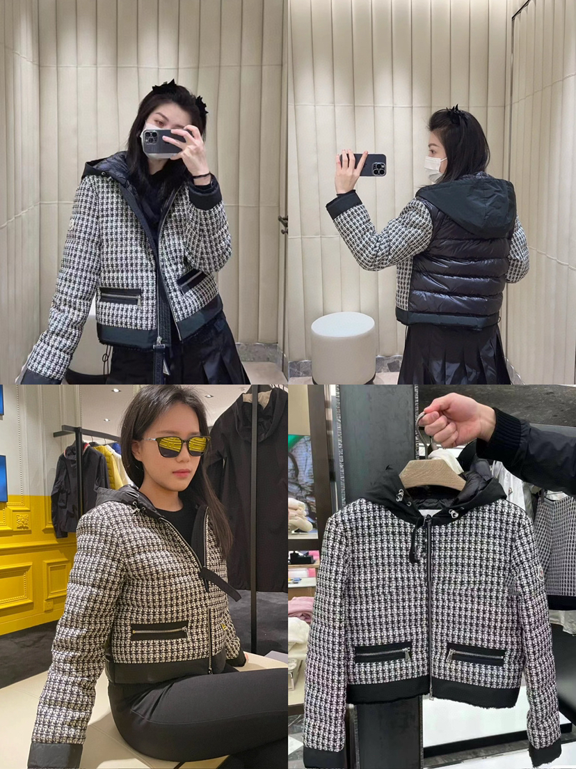 千鸟格的款式呢,太过深入人心,姑娘们自己都有买过不少zp的,你们自己掐着细节对比。五金,纽扣,拉链,拉链头,袖标,还有非常非常亲肤软糯,黑白花呢。轻盈保暖舒适,重点是,时装感羽绒,能这么美很是难得。