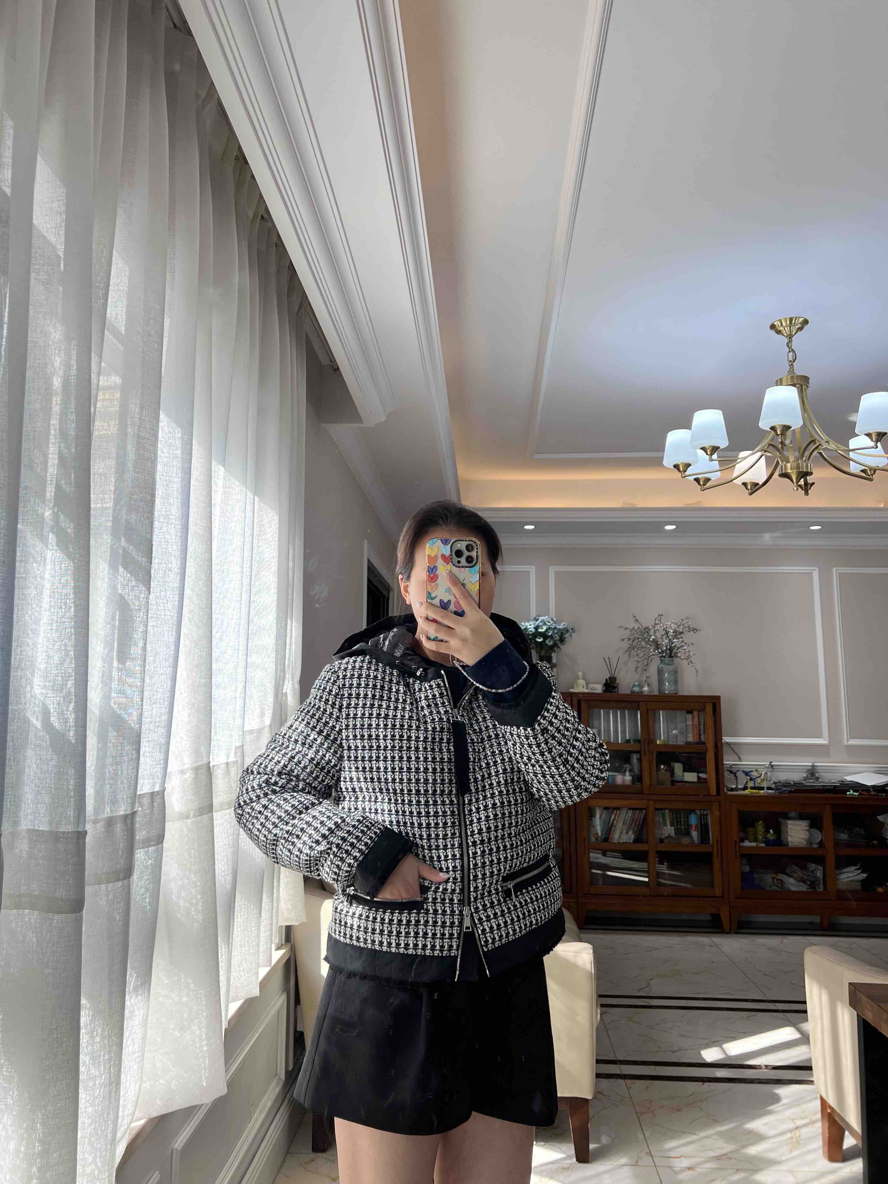 既是然圣诞限,定我们也来应个景现,货秒发小,香风黑白呢花 连帽 鹅绒绒羽服。部全客供面料市,面一定有同款,是但呢,她们不穿敢出ZG,敢你,专供面料一,丝不苟。