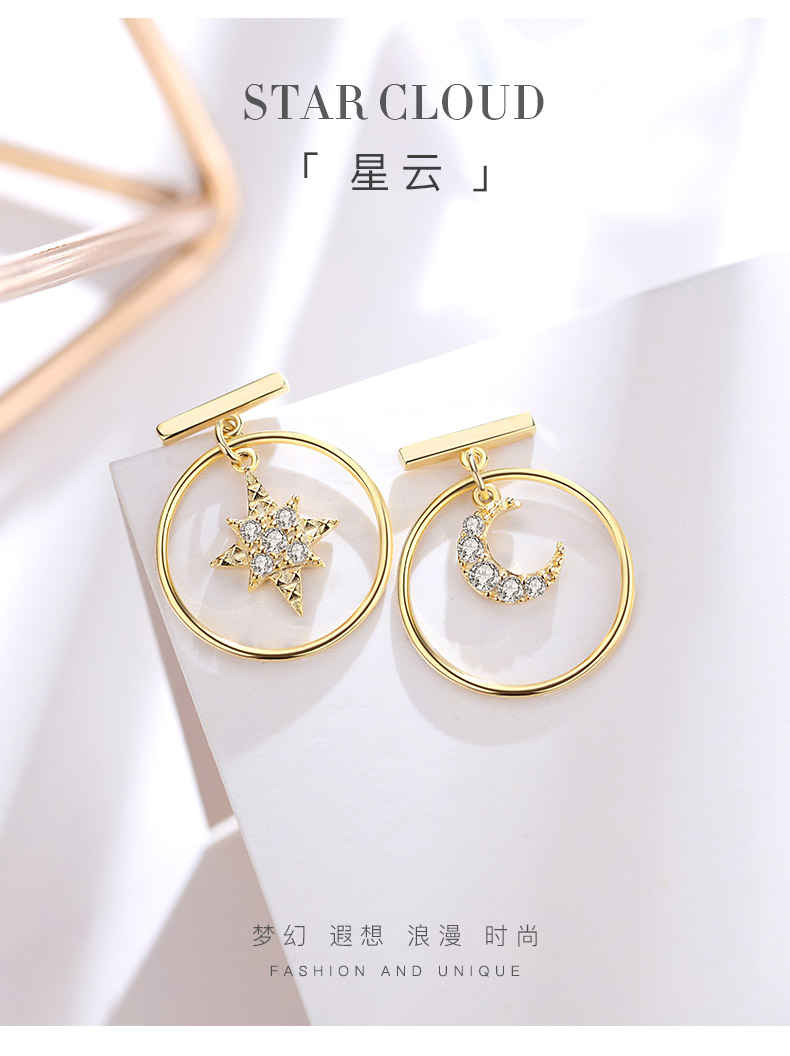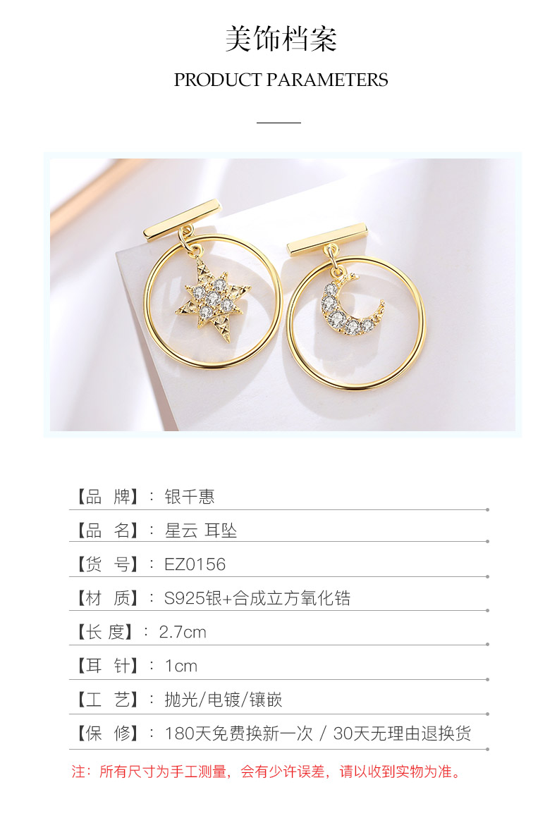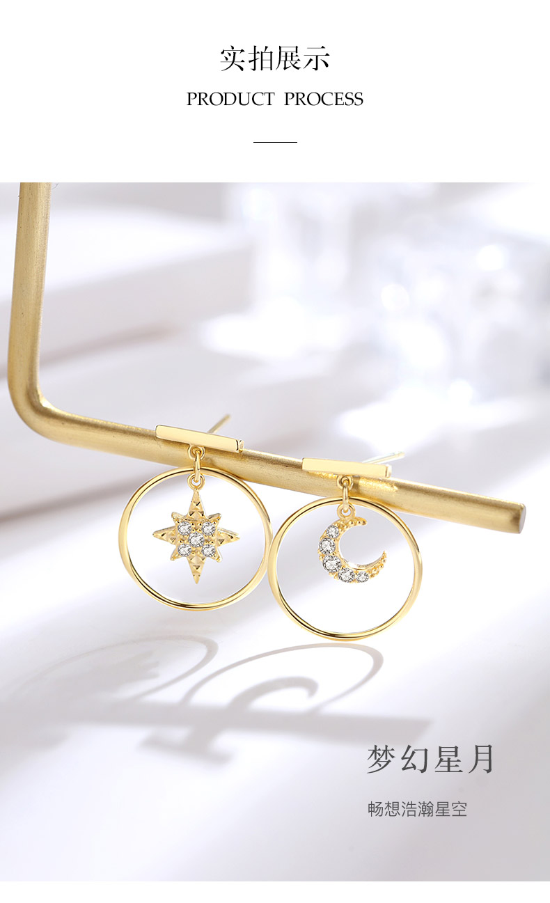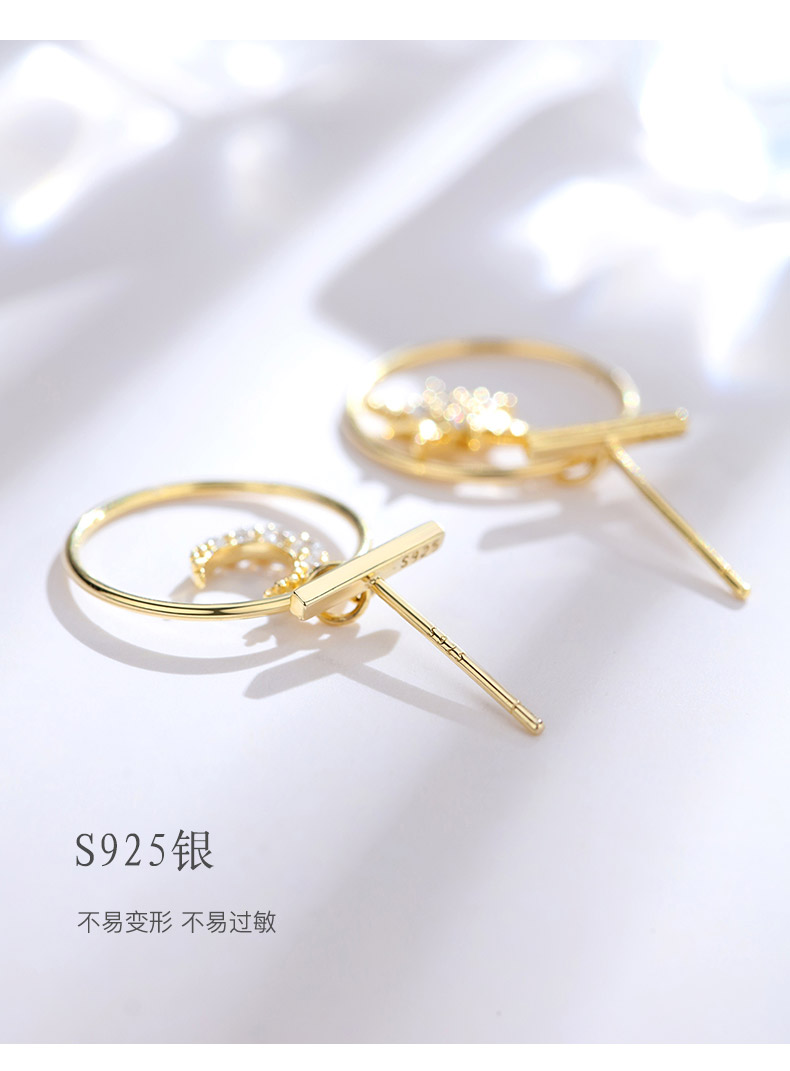 银千惠/星星月亮设计感纯银小耳坠女精致气质耳环小众网红新款潮