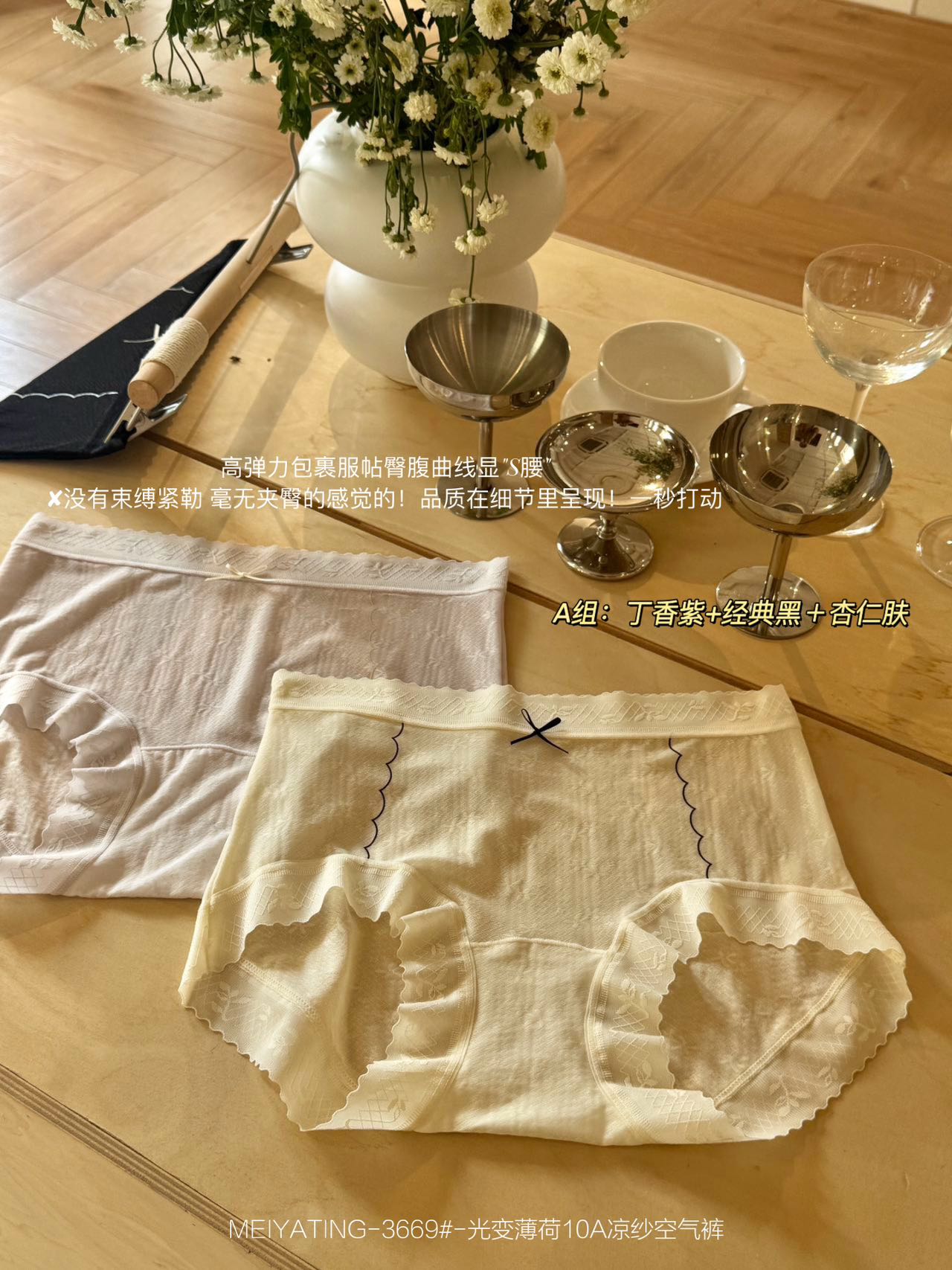 主面料成分:锦纶73.6%+氨纶26.4%裆布成分:粘纤88.1%+桑蚕丝7.6%+氨纶4.3%