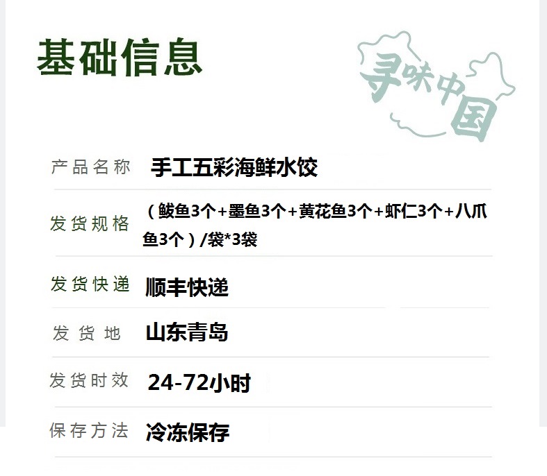 【中国非物质文化遗产】【绿色 五彩海鲜水饺】纯手工包制 皮薄馅多 舌尖上的非遗美食 340g*3袋