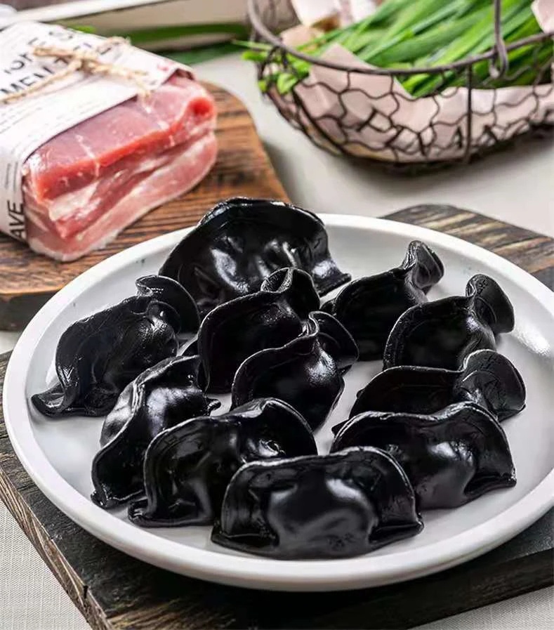 漆黑的墨鱼水饺选用纯天然的墨鱼汁和面