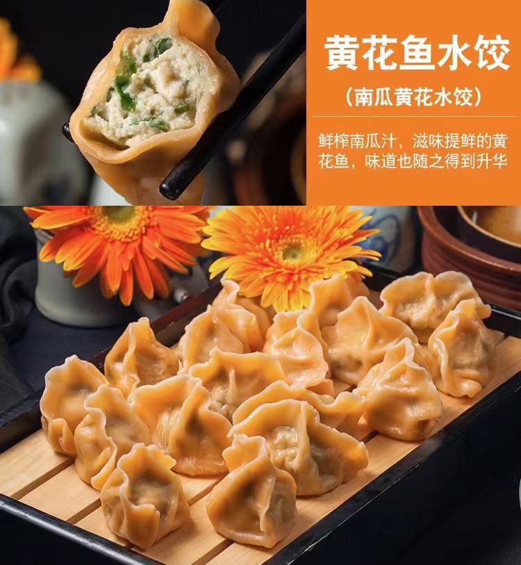 3、餐桌上的“金色月牙”—南瓜汁皮黄花鱼水饺