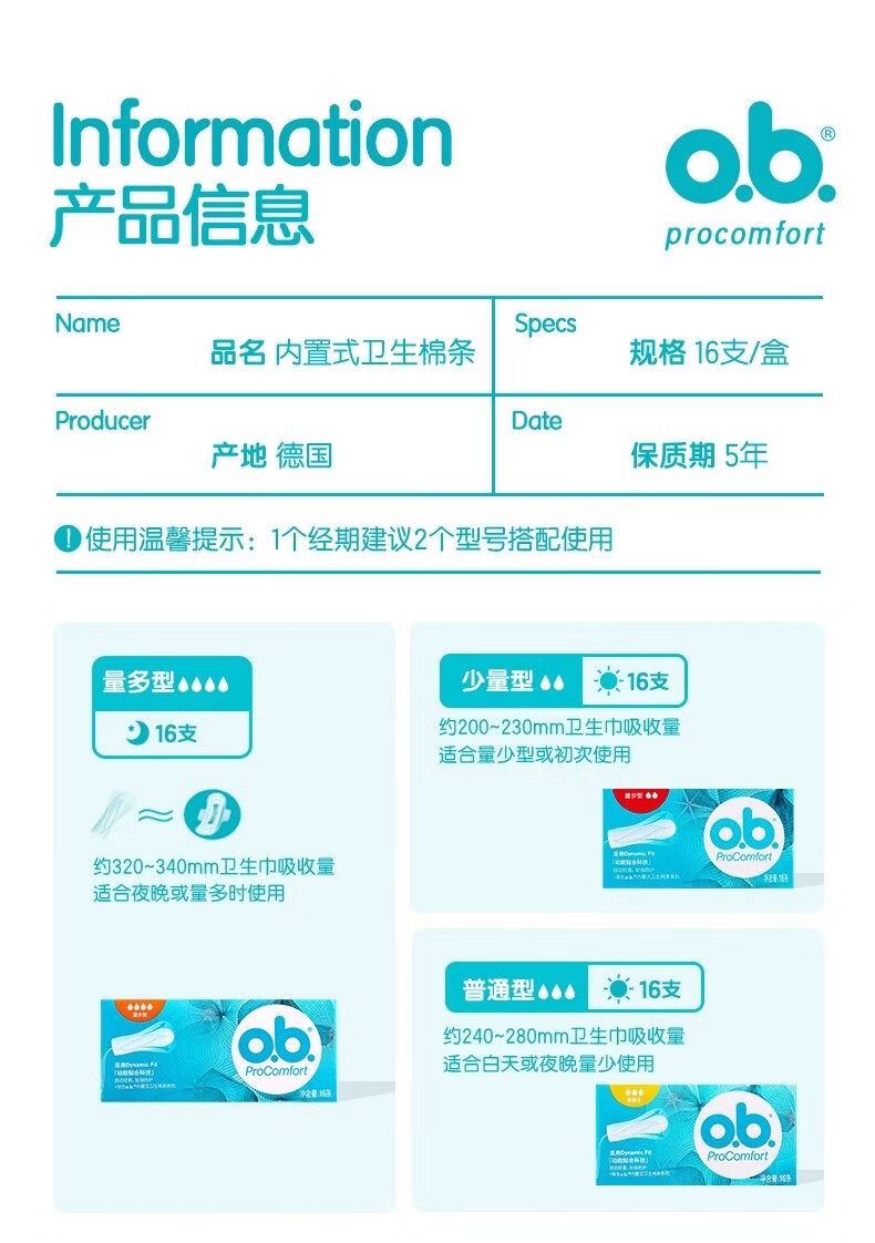 ob内置式卫生棉条量少型16条