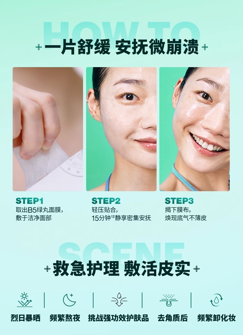 蒂佳婷B5绿药丸面膜维稳修护屏障水润舒缓5片/盒