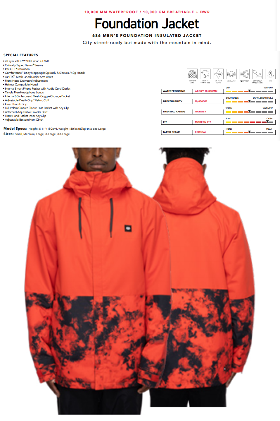 686 21-22 新款 Foundation Insulated Jacket男款雪服 火焰红