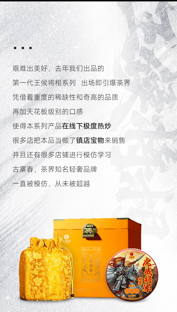 【王侯将相-虎威将军:赵云】2024年升级版傲世来袭 一芽一叶成就一片茶饼 比冰岛老寨单株更奢侈更豪华!一套内含6饼,拍5套发6套