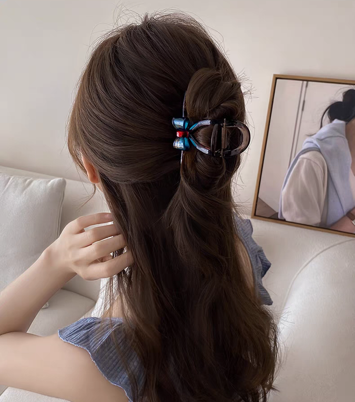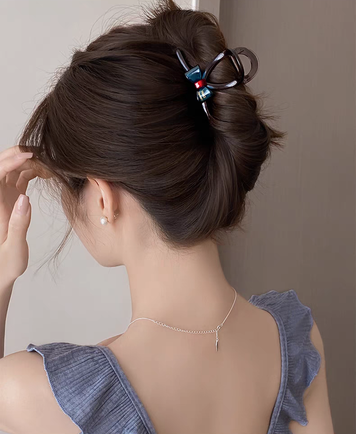 一夹多用,轻松打造不同风格 高马尾+小领结:俏皮减龄,学生党必备! 低盘发+领结点缀:优雅中带点小心机,适合约会或职场。 半扎发+彩色领结:搭配同色系穿搭,整体造型更协调。