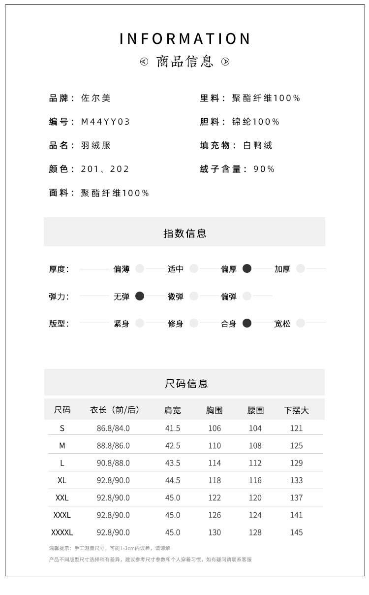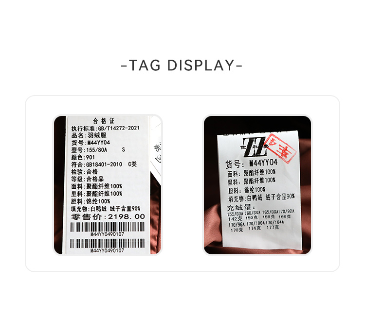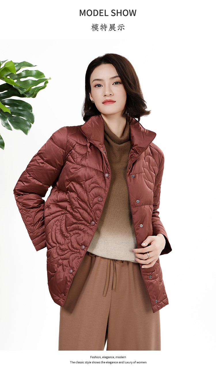 佐尔美秋冬上新 时尚立领精致压纹保暖羽绒服女M44YY04
