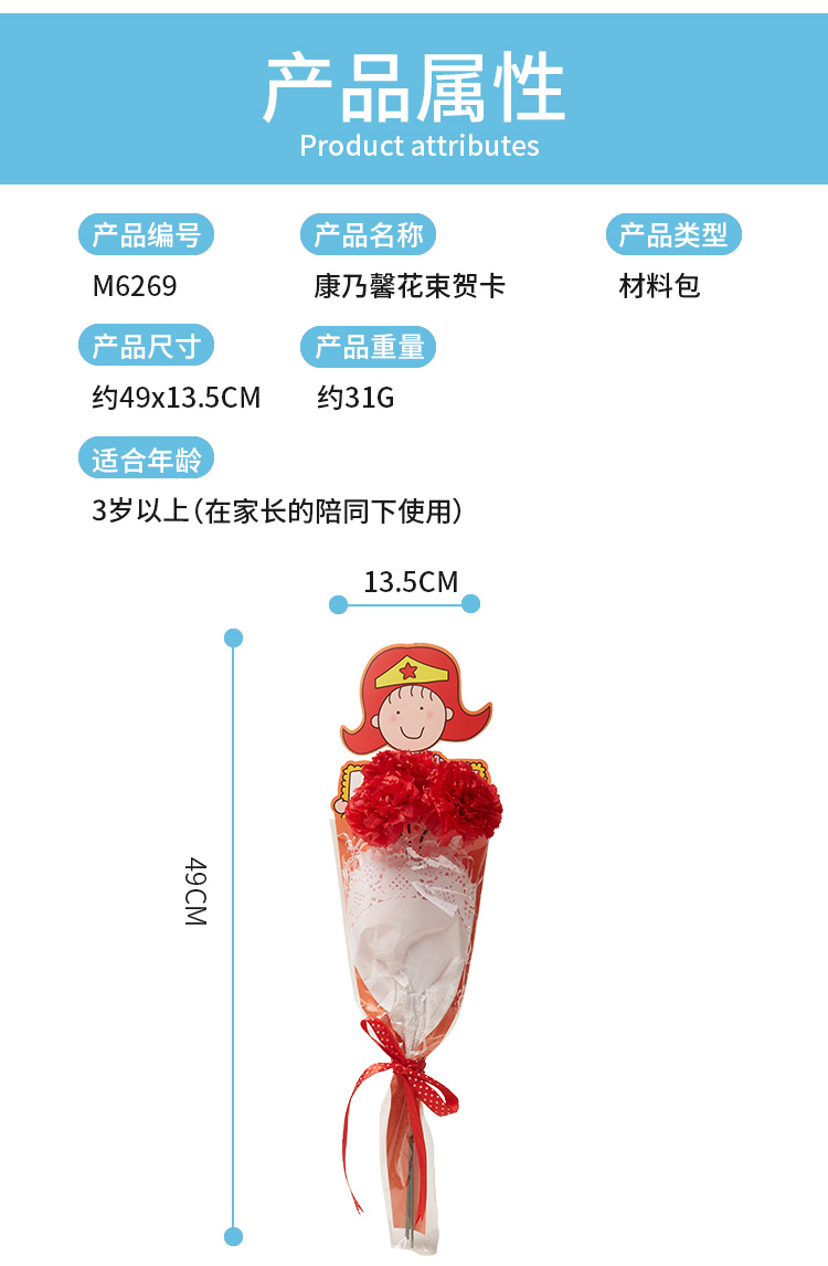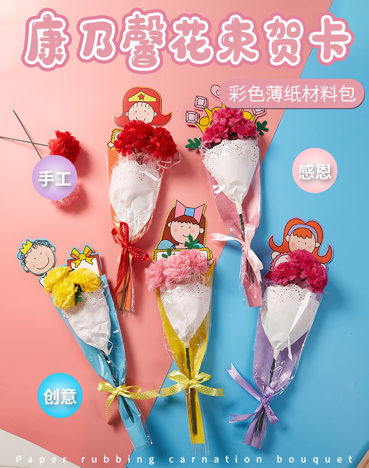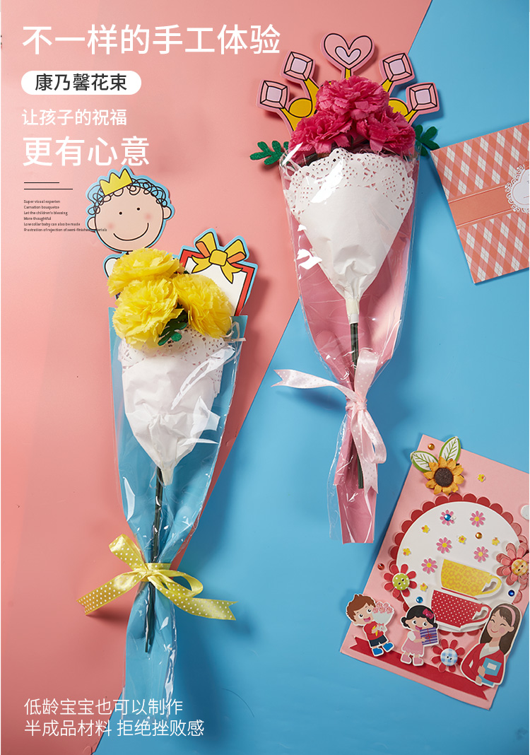 母亲节创意儿童手工diy康乃馨花束贺卡幼儿园制作材料包
