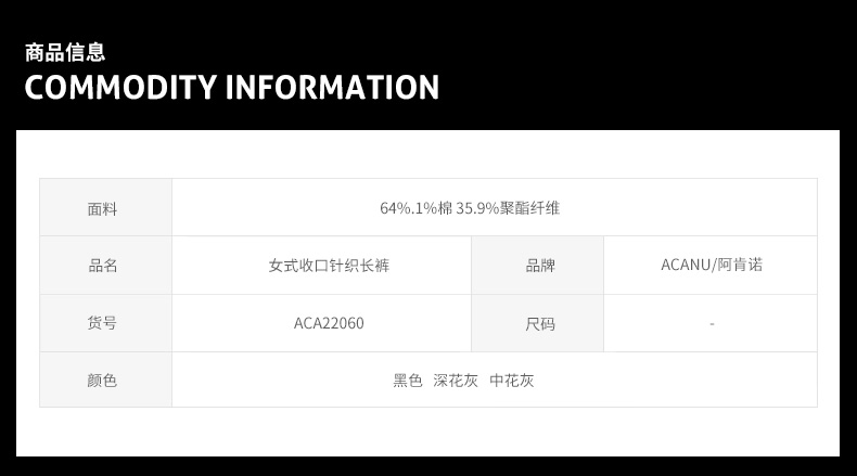 ACANU阿肯诺/女式收口针织长裤 ACA22060