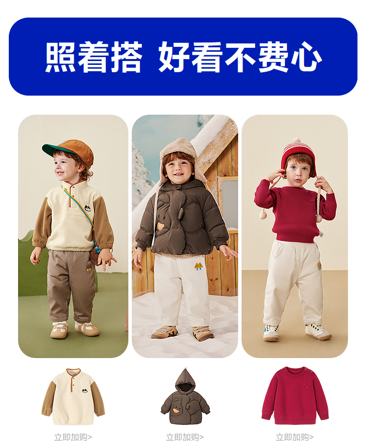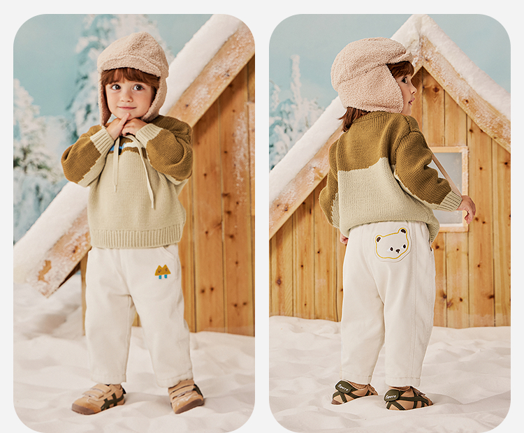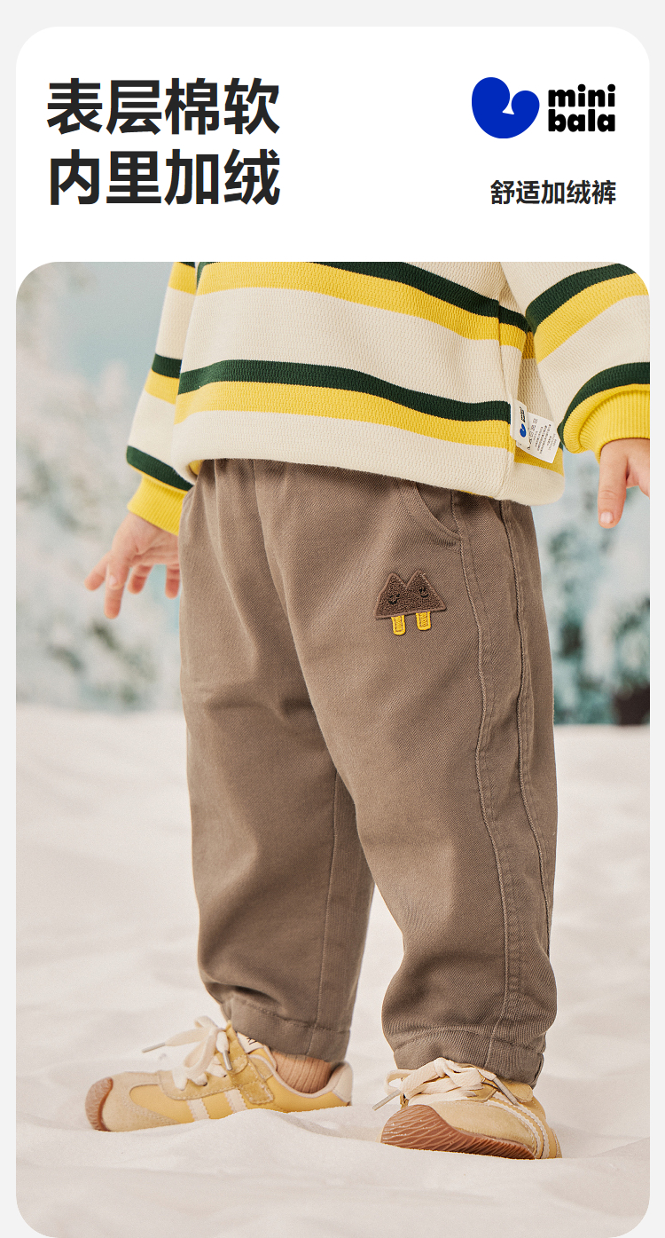 迷你巴拉男童宝宝长裤2025冬季新品亲肤保暖内里加绒舒适裤子