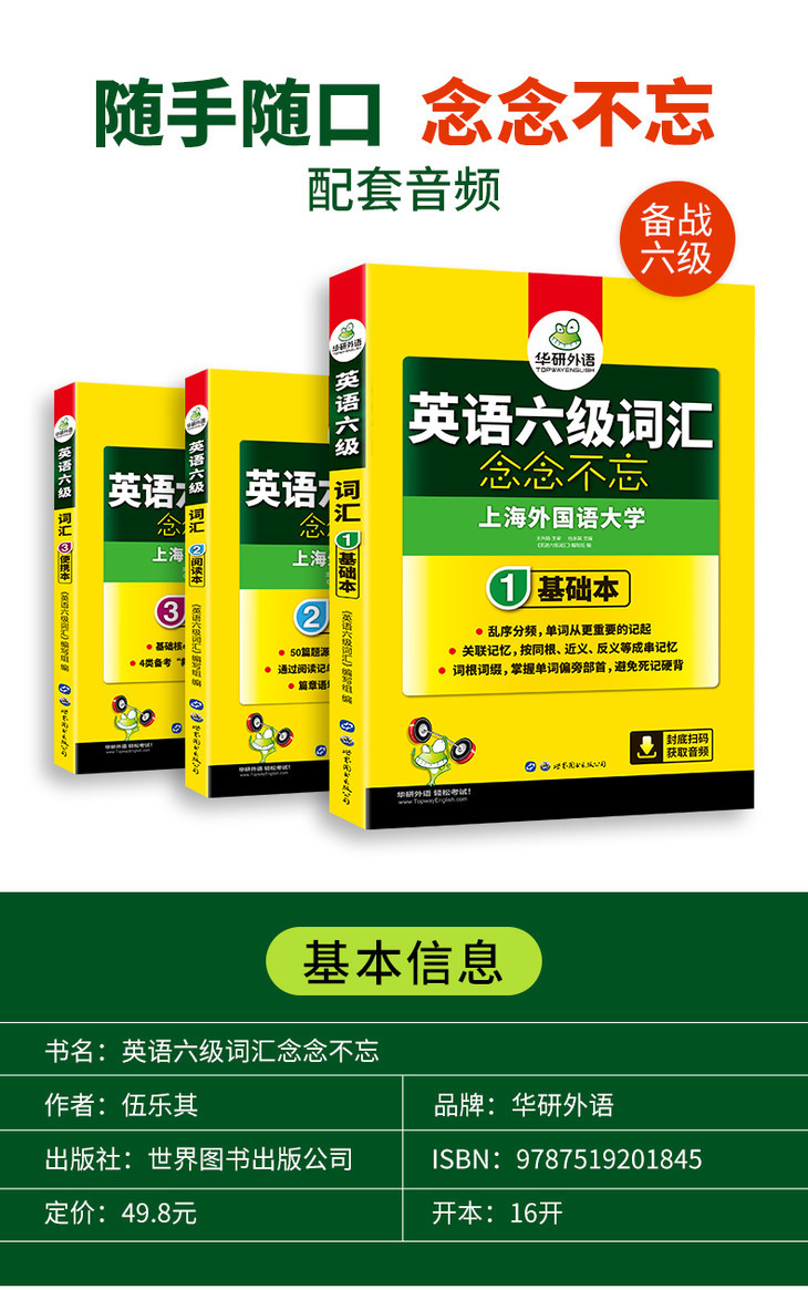 2.备考充分:基础本+阅读本+便携本,三位一体把单词记牢、记活,轻松上考场。