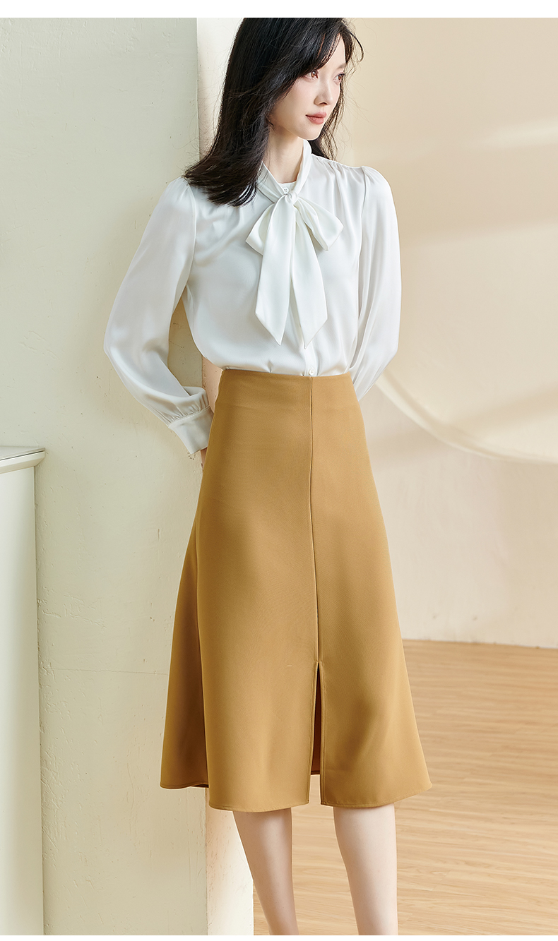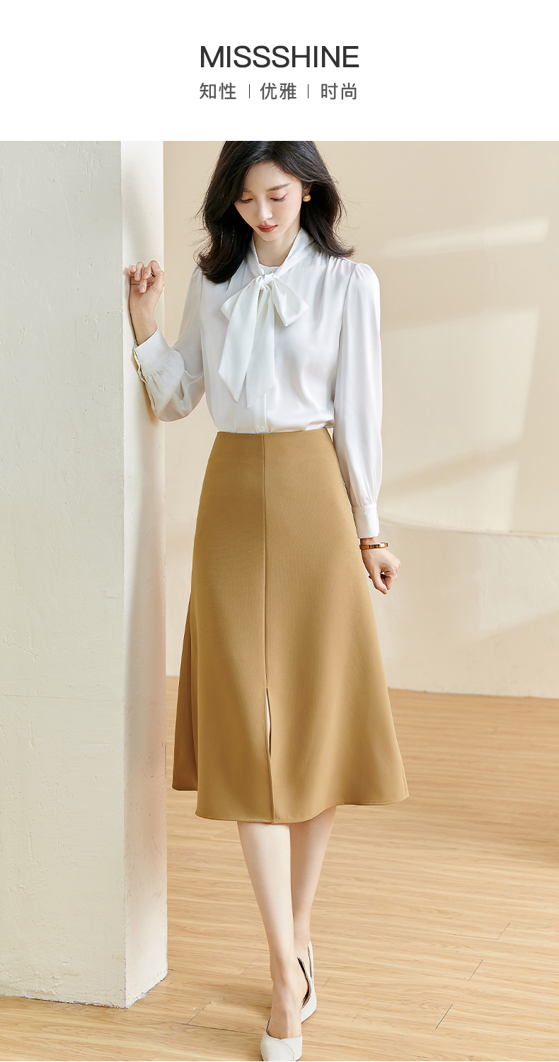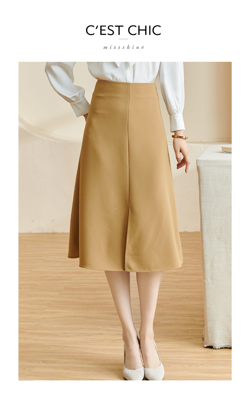 米思阳2026春季新款时尚百搭修身半身裙卡其色高腰开叉a字裙1749