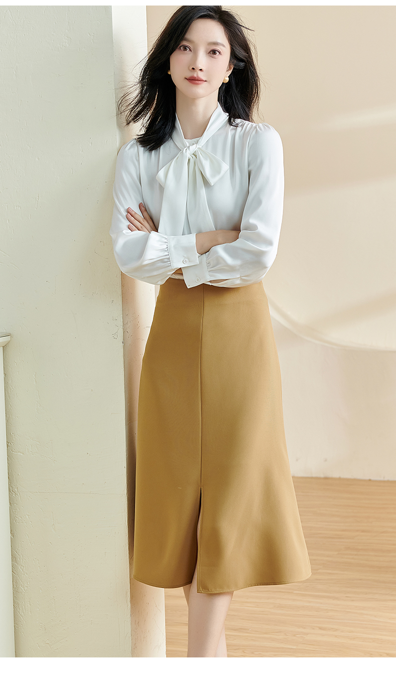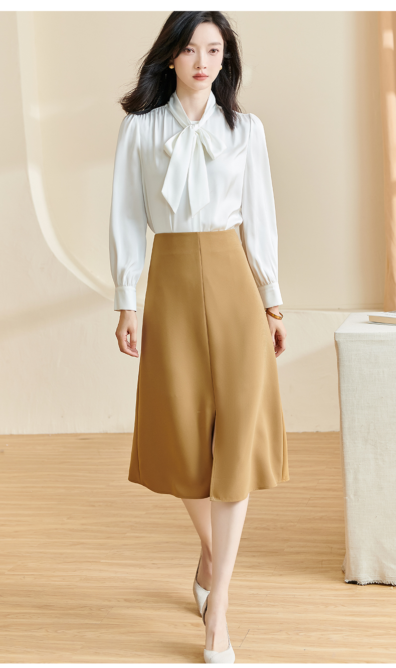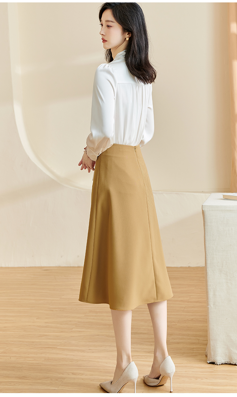 米思阳2026春季新款时尚百搭修身半身裙卡其色高腰开叉a字裙1749