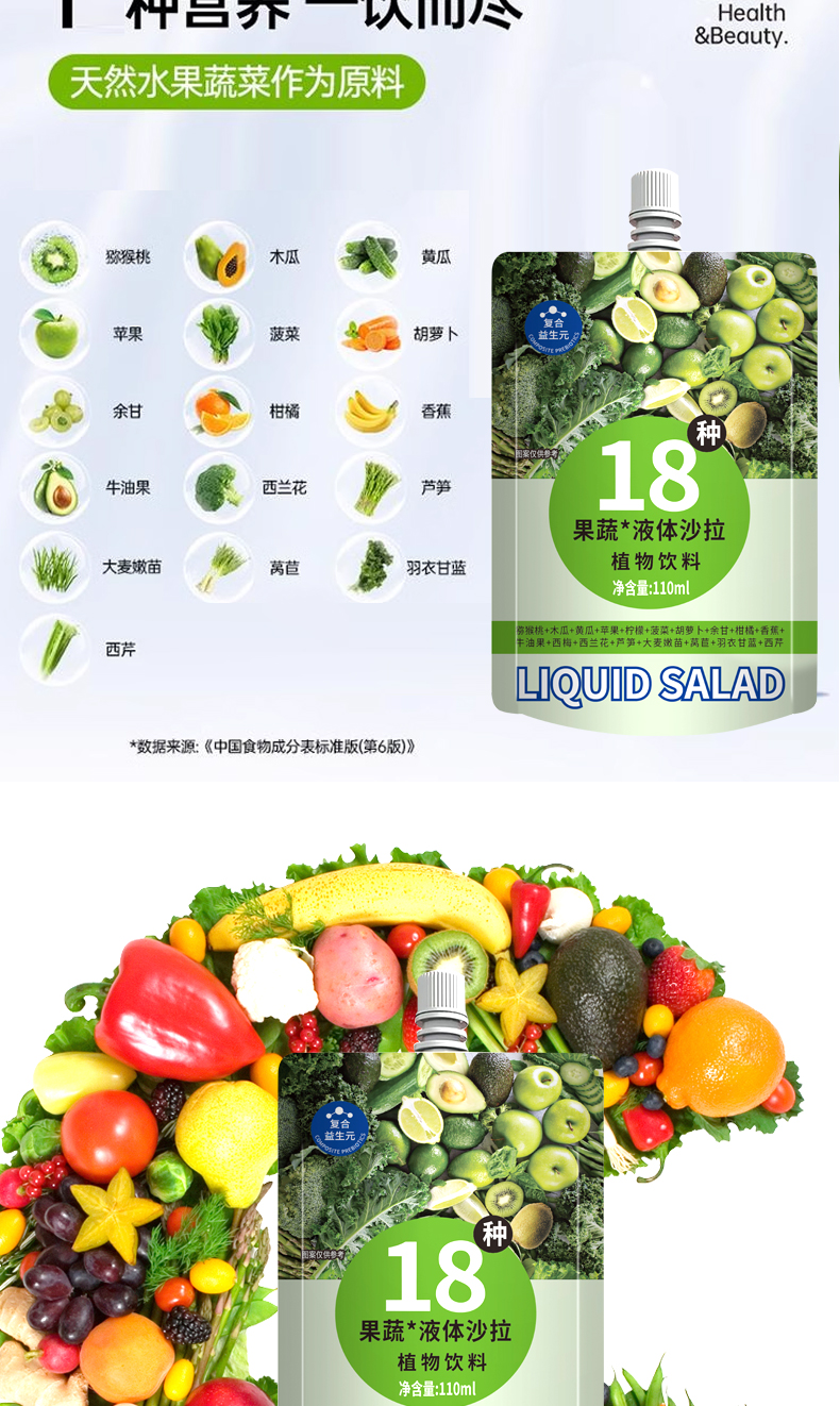 昔日印象液体沙拉18种果蔬蔬菜浓缩果汁代餐膳食纤维轻液断代餐