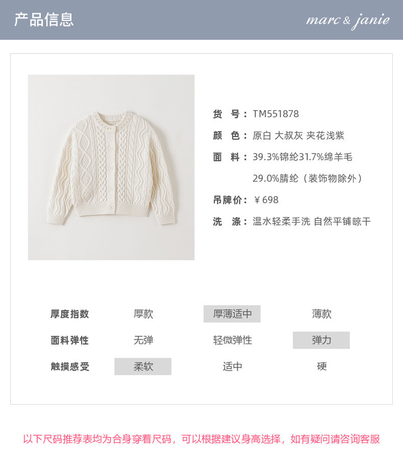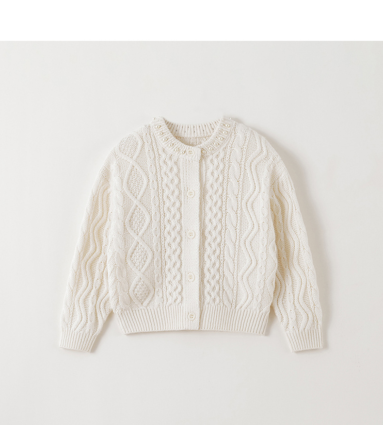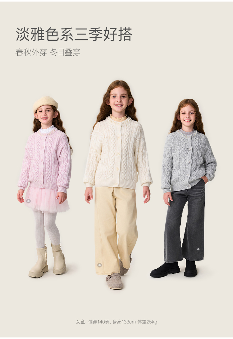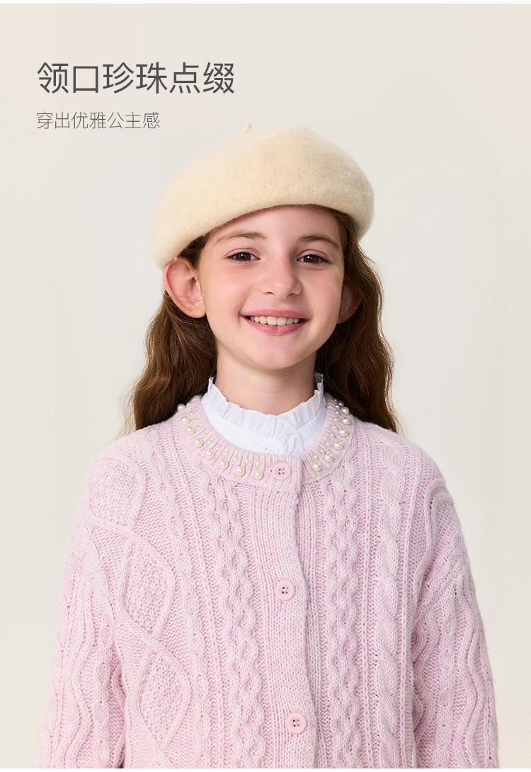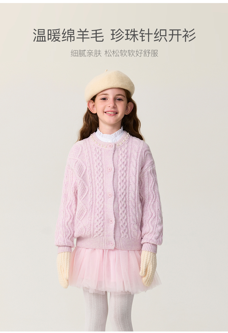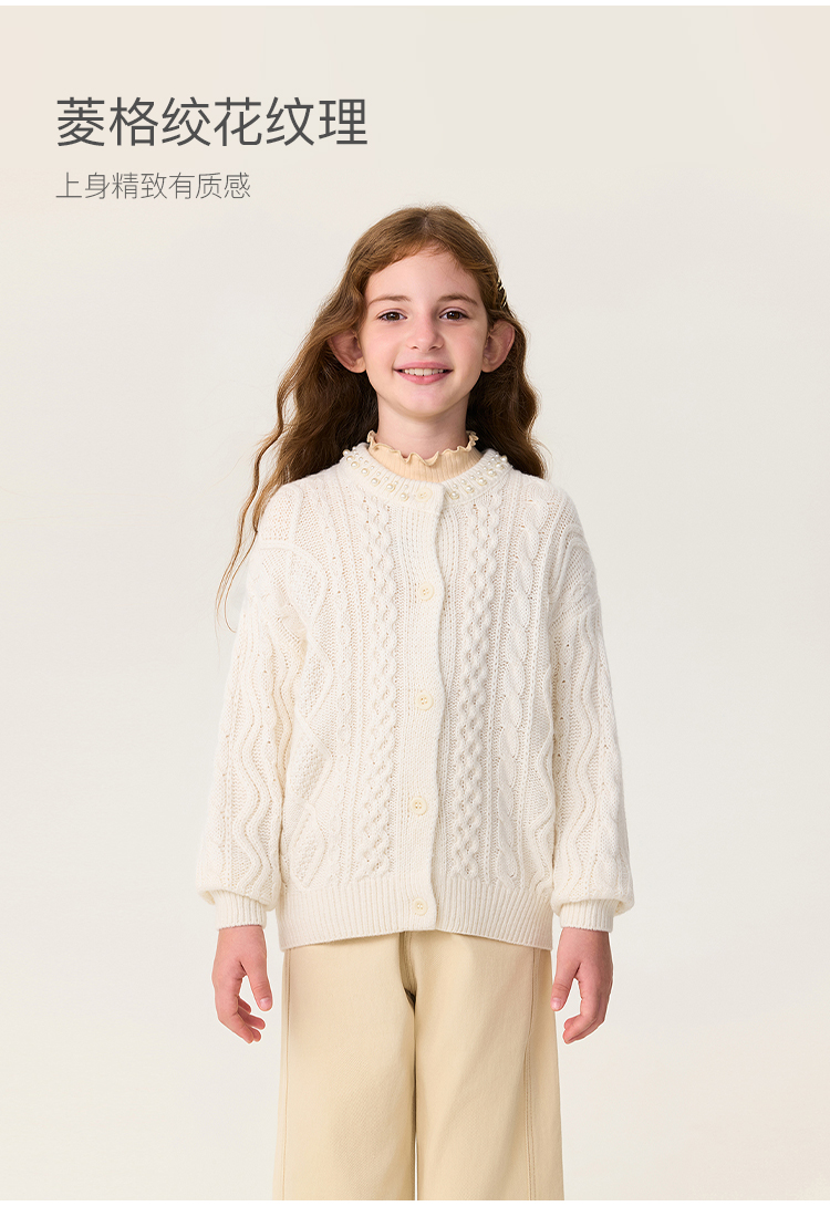 马克珍妮女童菱格羊毛针织开衫2025年冬装新款551878