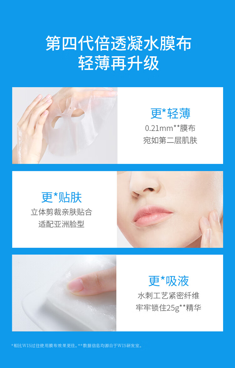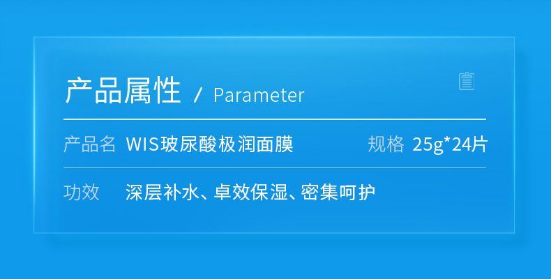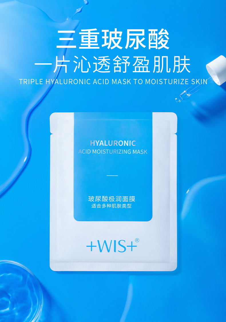 WIS玻尿酸面膜24片 三重玻尿酸精华 熬夜补水保湿面膜修护舒缓敏感肌可用 男女士护肤品