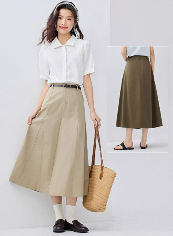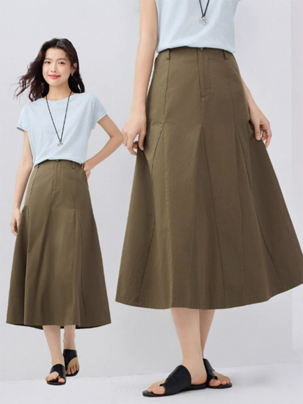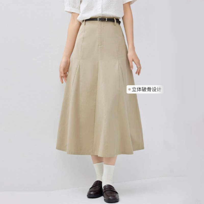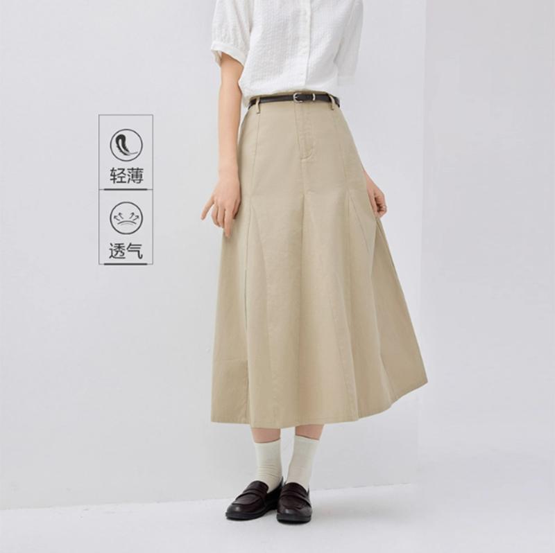 佐丹奴裙子女夏季新款纯棉显瘦A字裙破骨薄款半身长裙女13465330