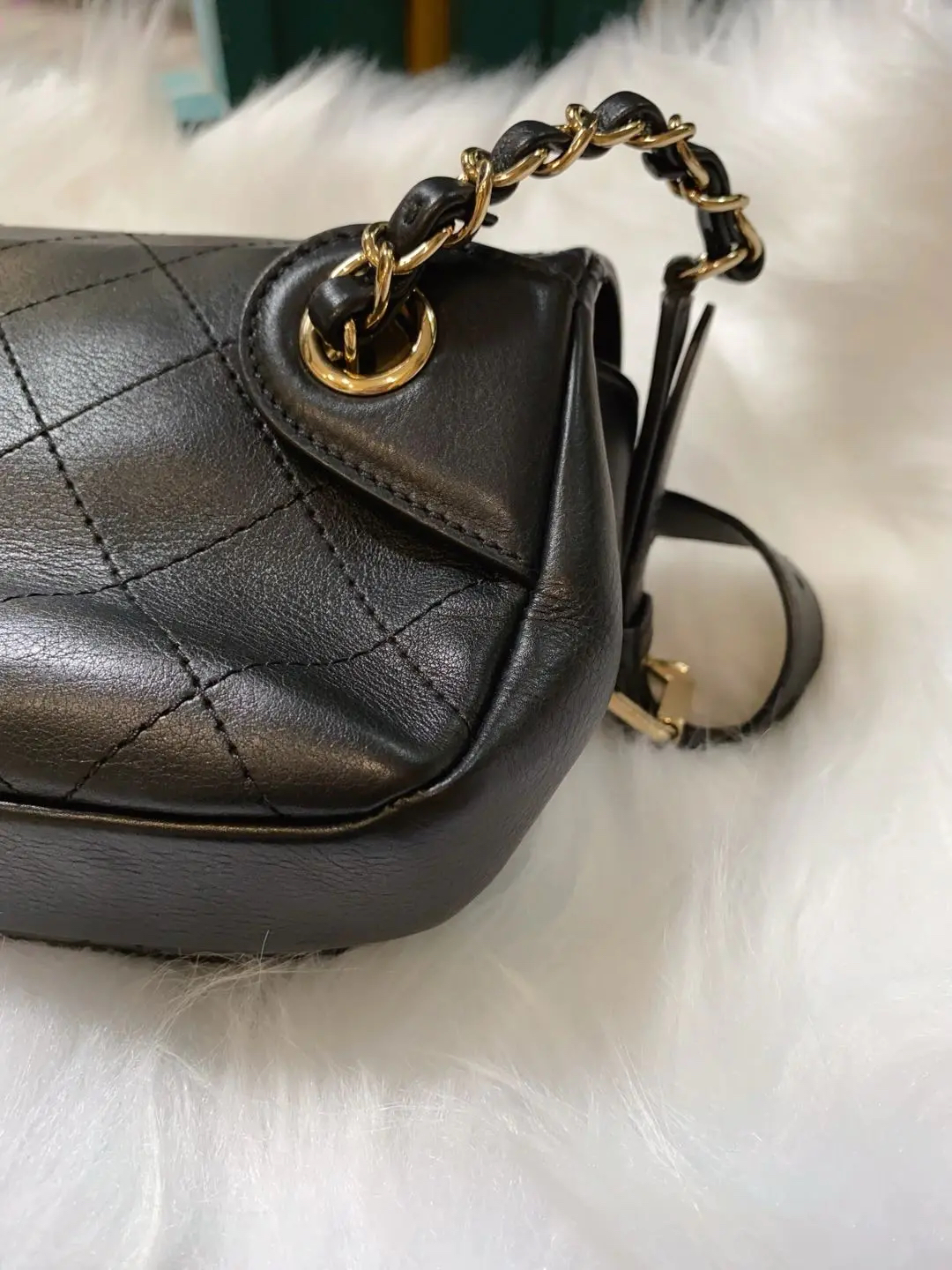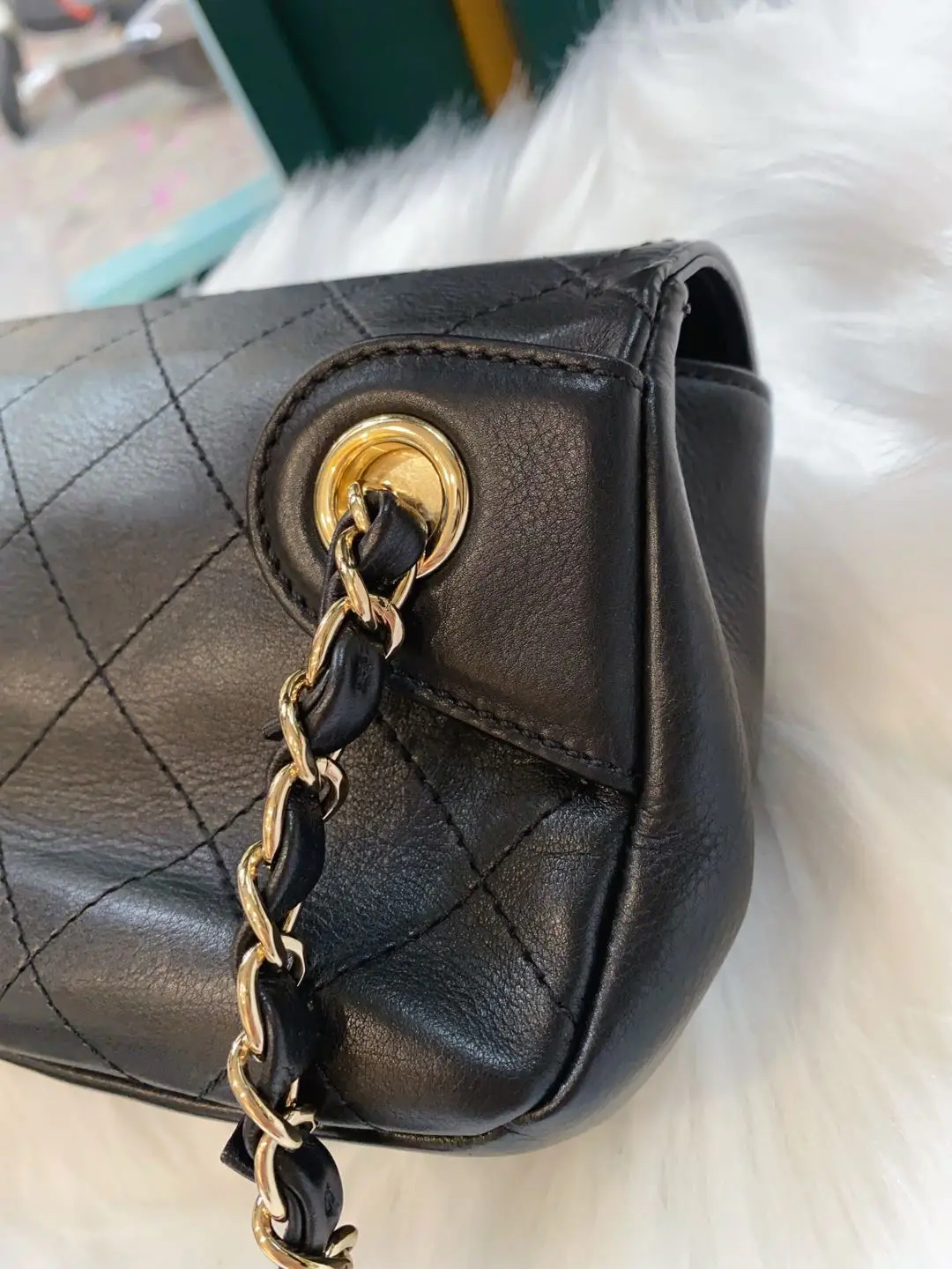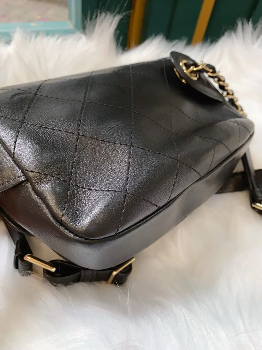 CHANEL 羊皮 黑金 方胖子 斜挎包