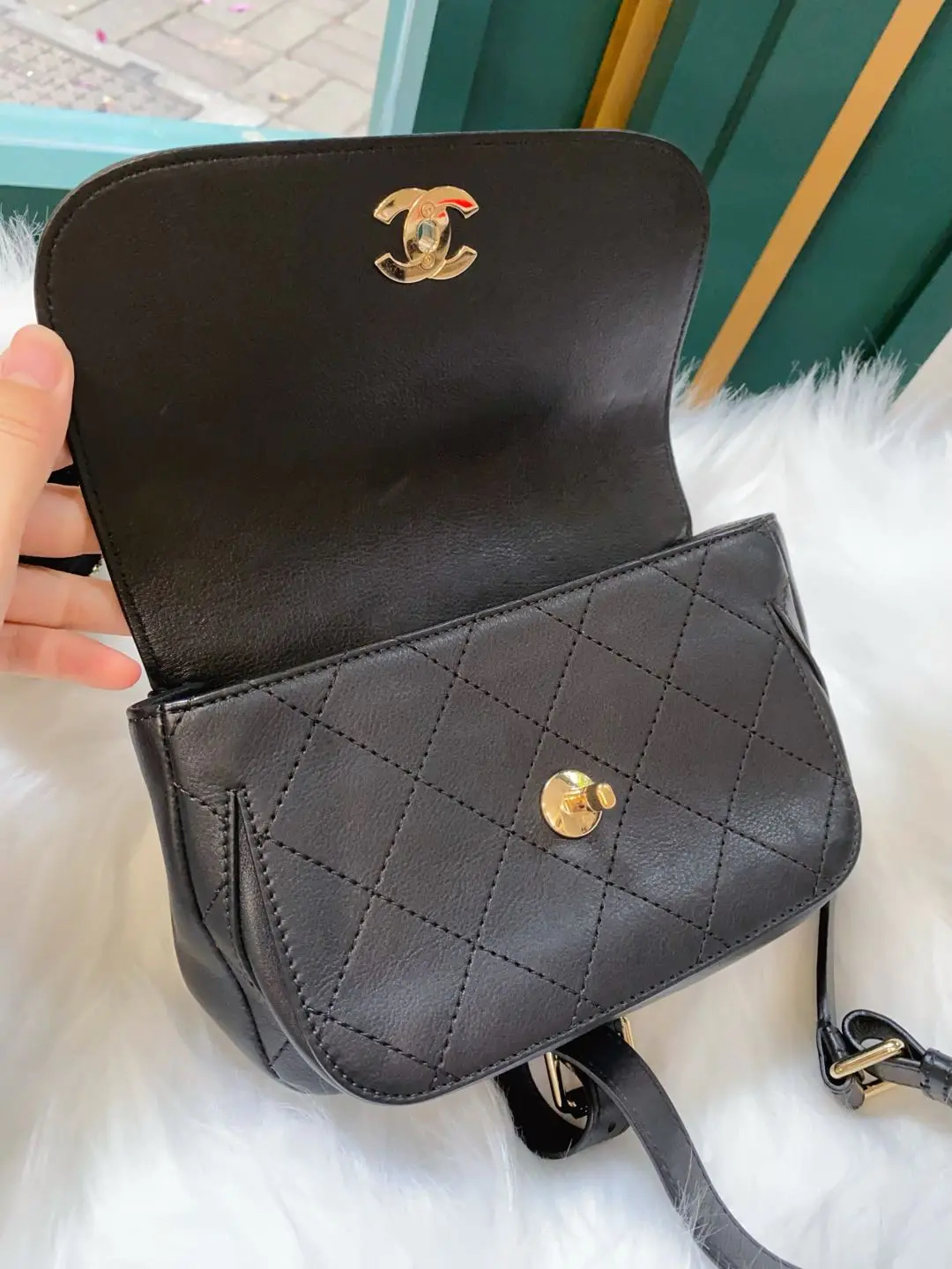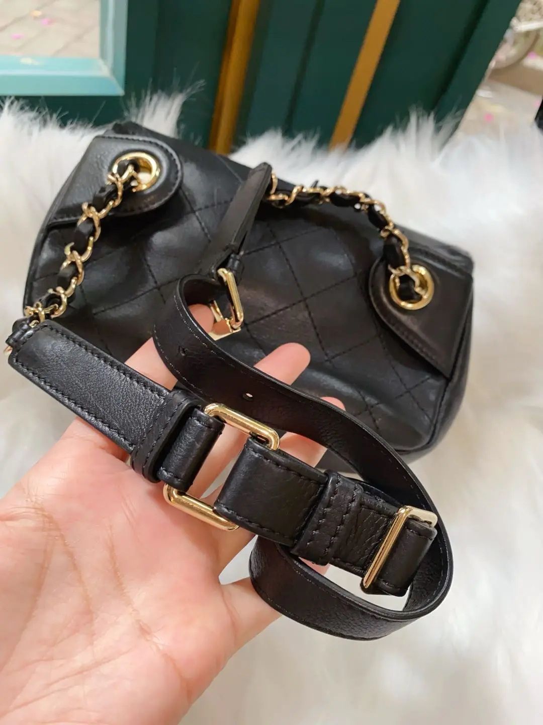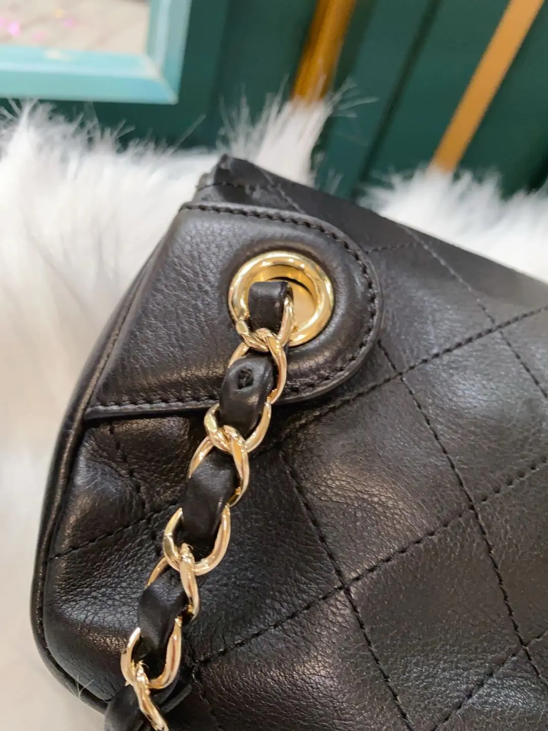 CHANEL 羊皮 黑金 方胖子 斜挎包
