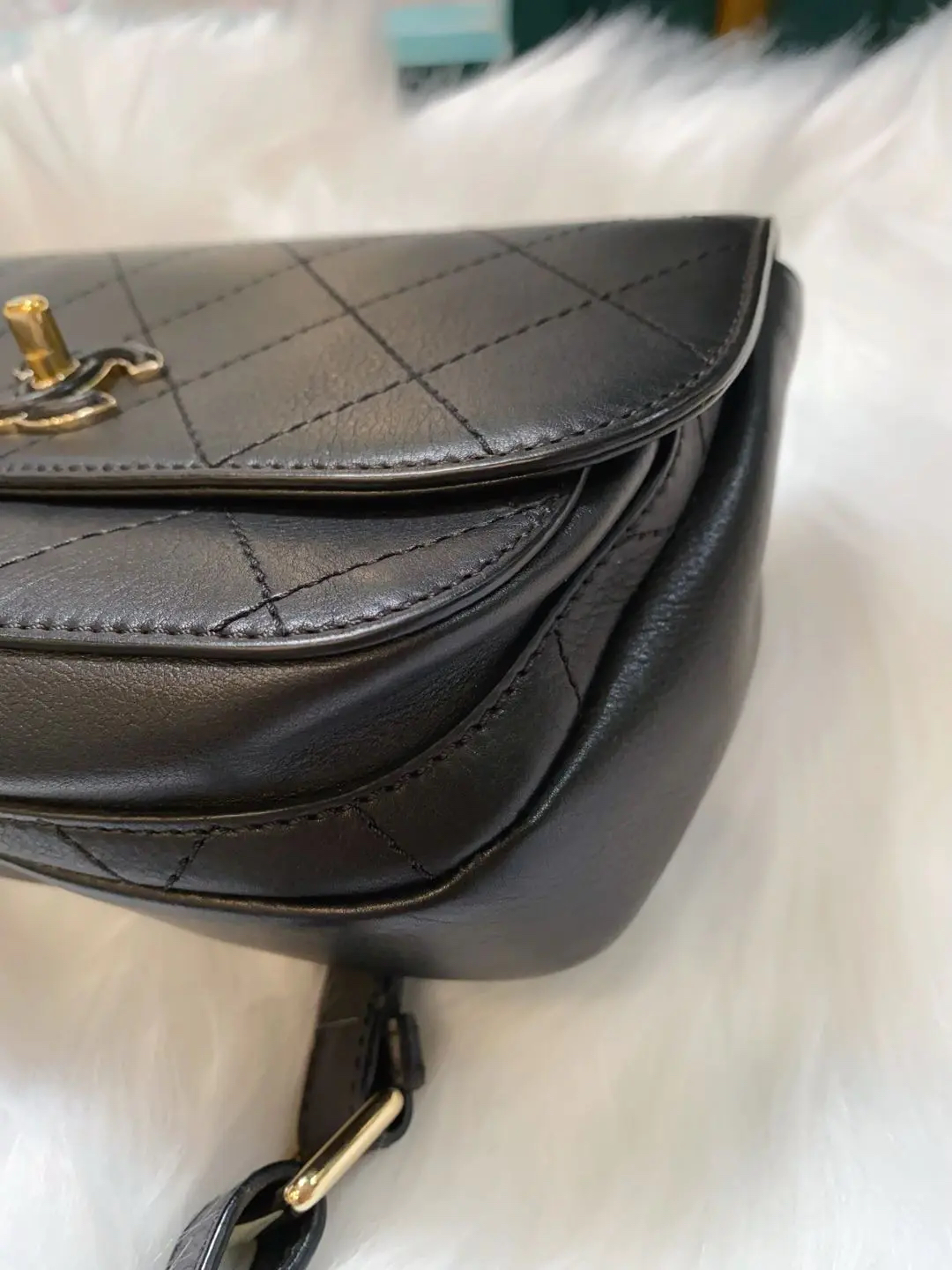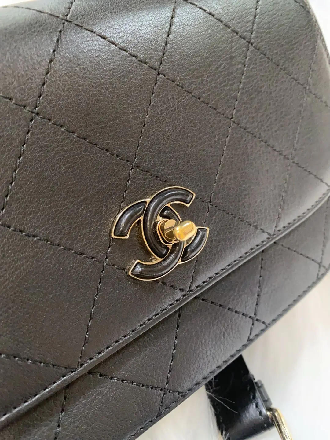 Chanel 黑金 牛皮 马鞍包 胸包