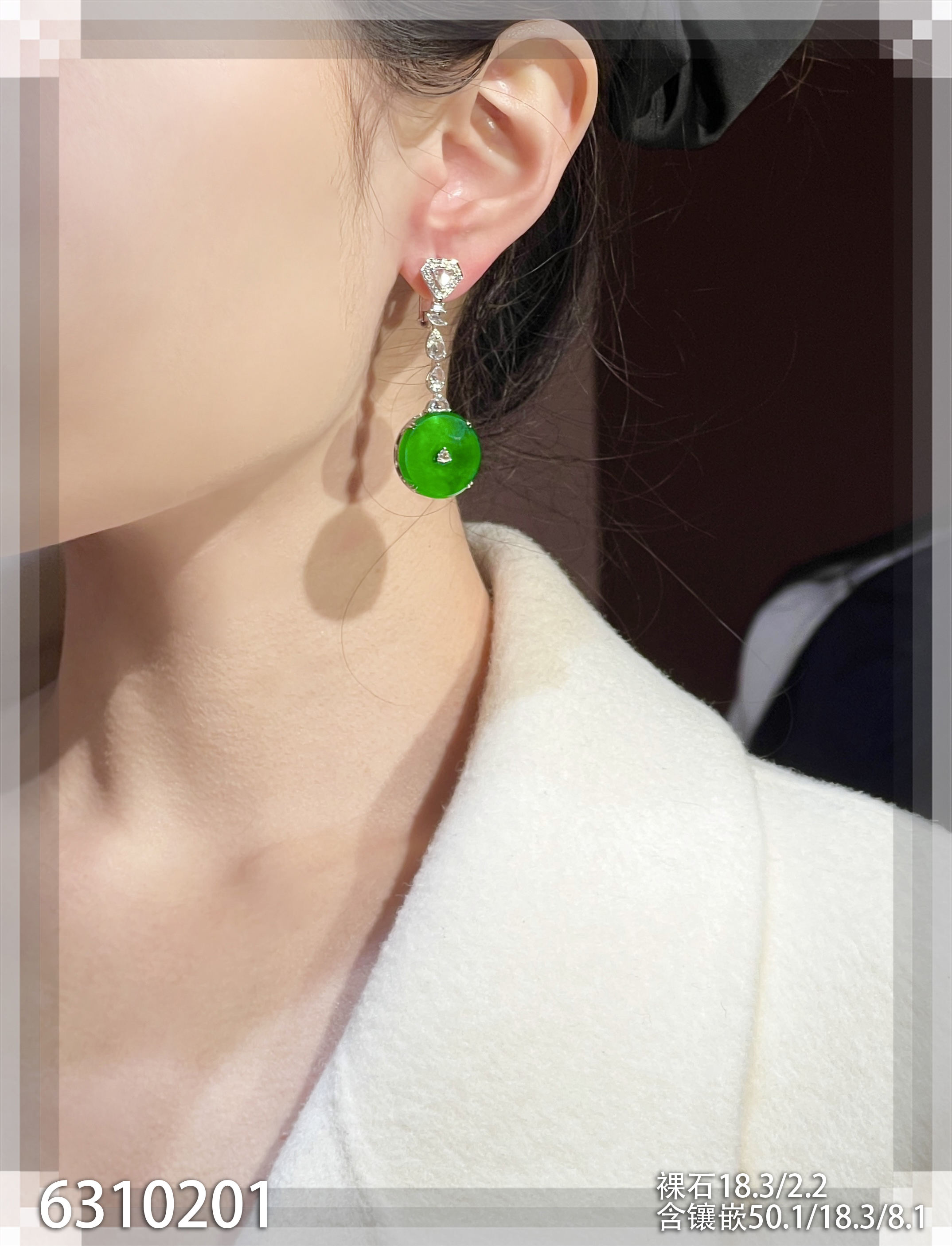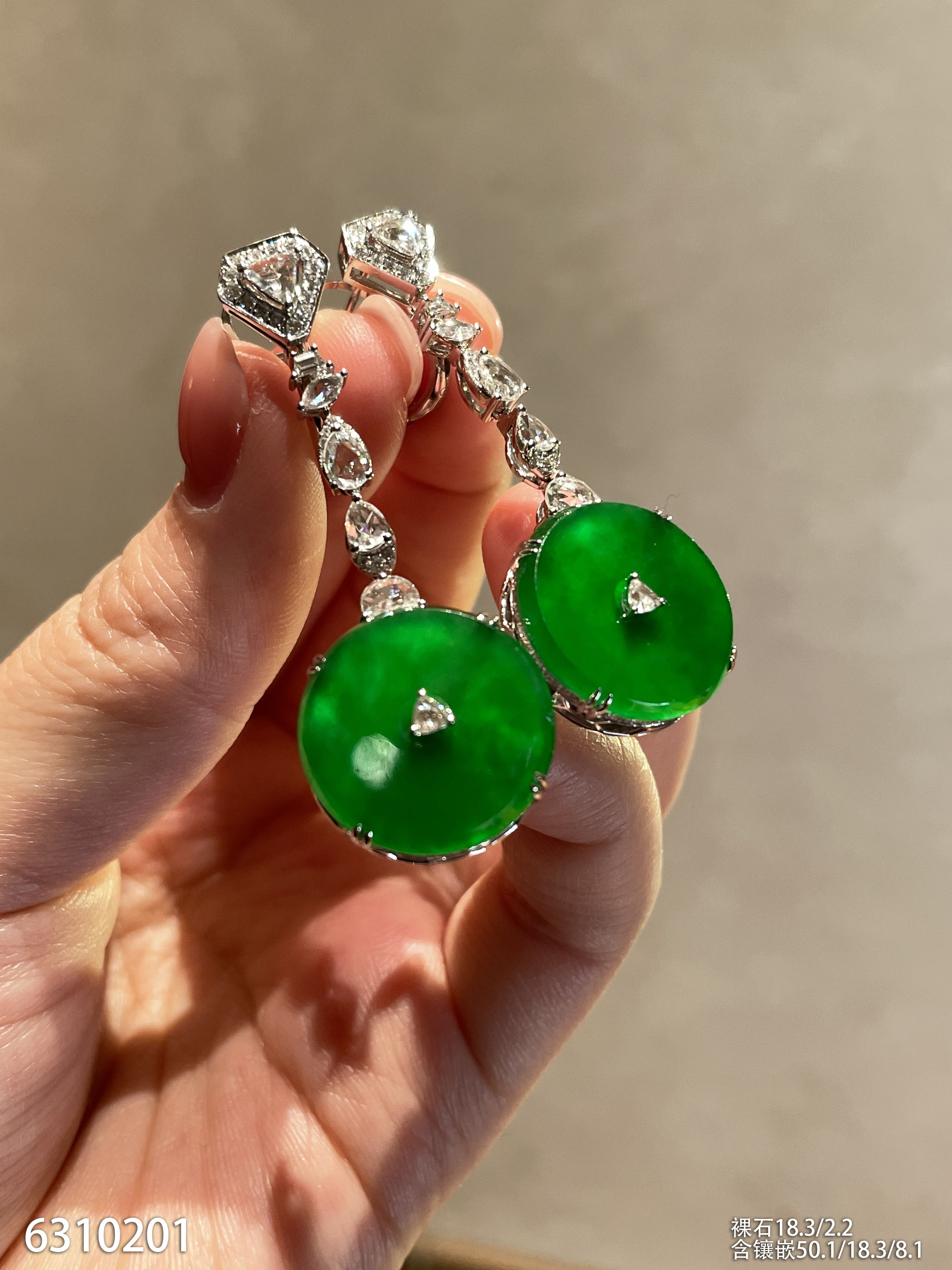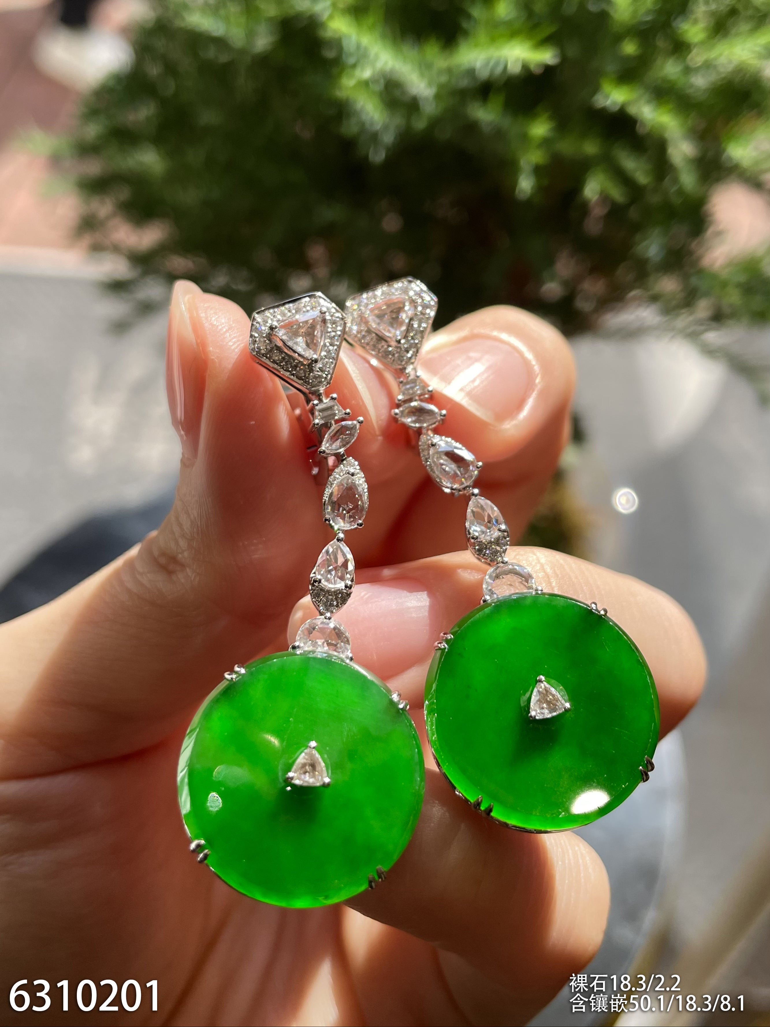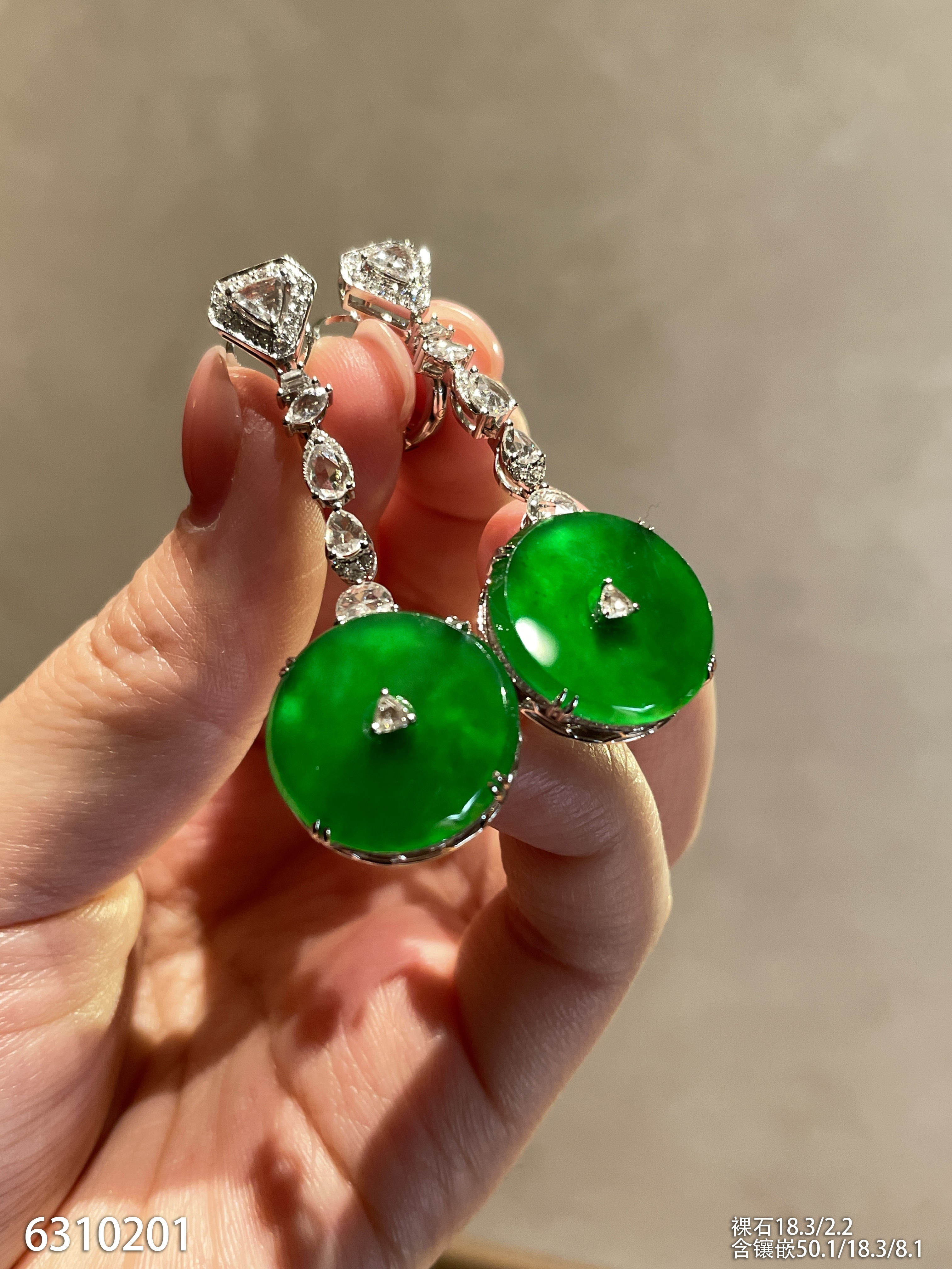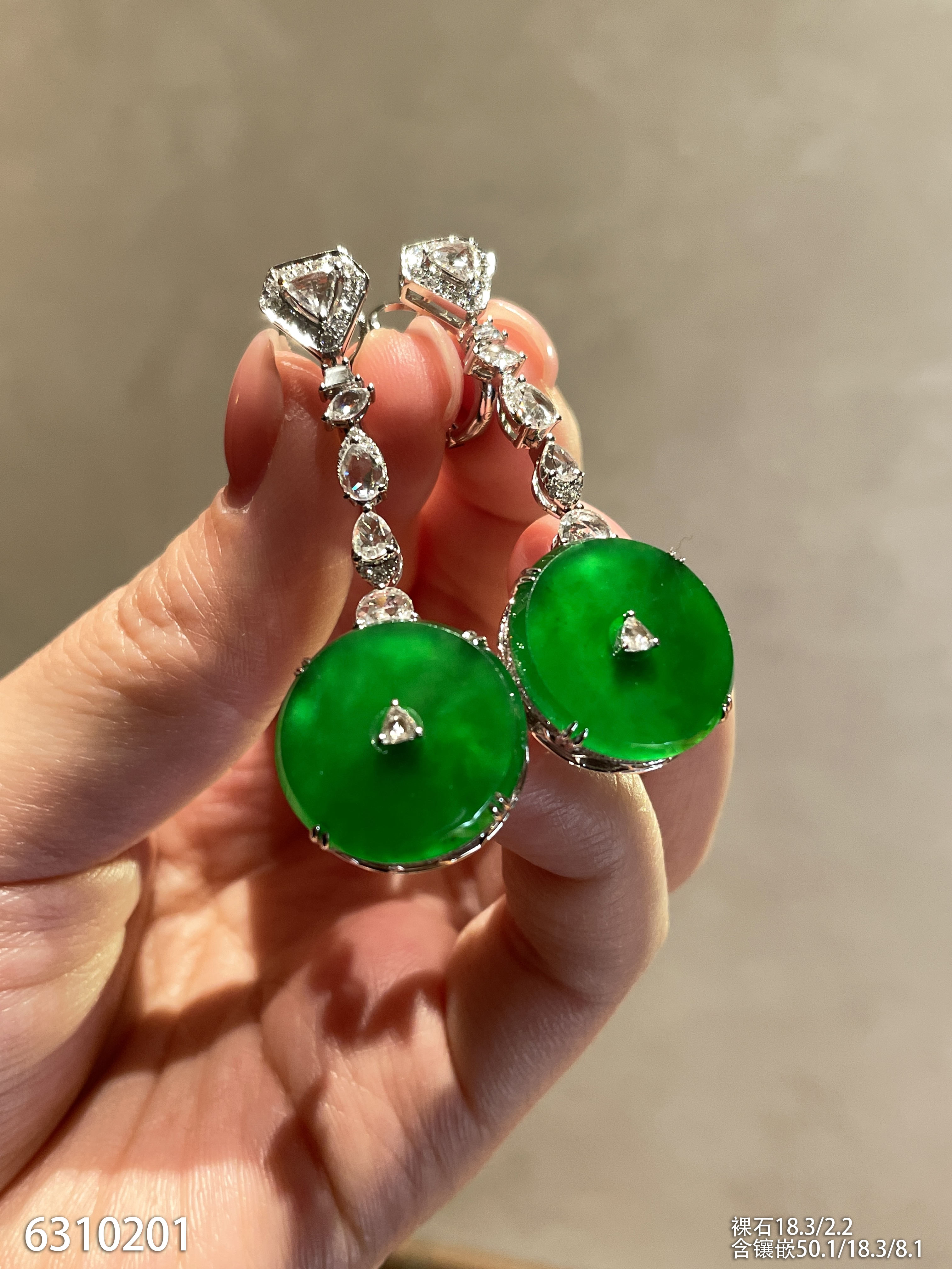 玻璃种帝王绿蛋面耳坠【6023104】具体价格微信咨询