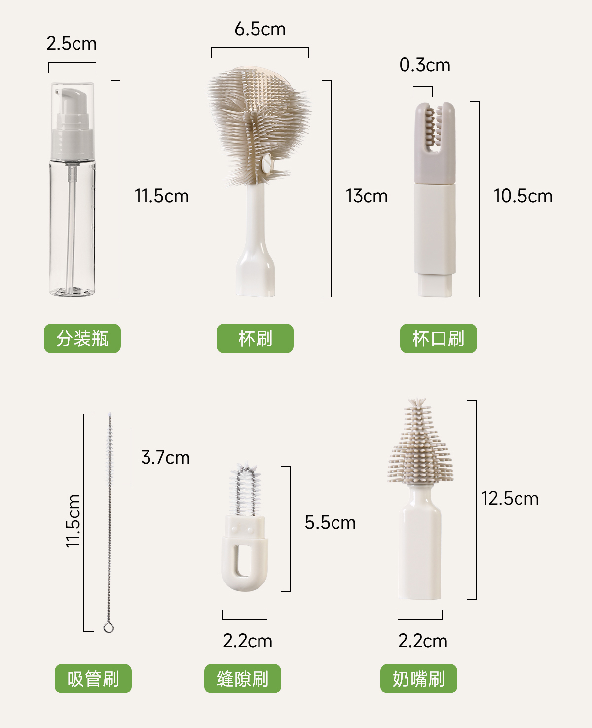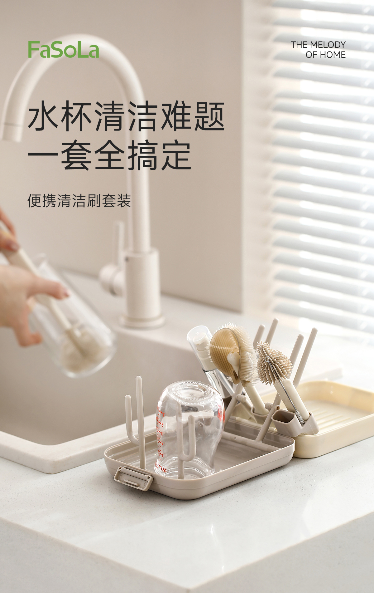 FaSoLa奶瓶刷新生婴儿专用无死角清洁刷套装硅胶杯刷奶嘴刷吸管刷