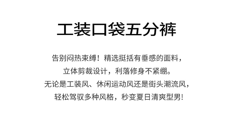 GXG男装【工装口袋】25夏季时尚舒适松紧腰轻薄透气男式五分短裤K&C