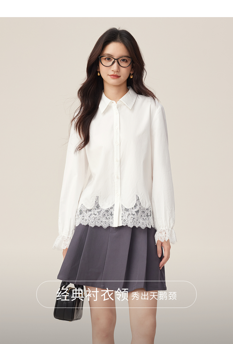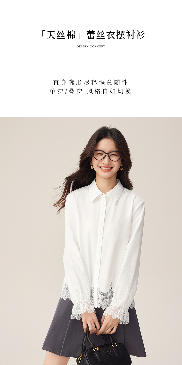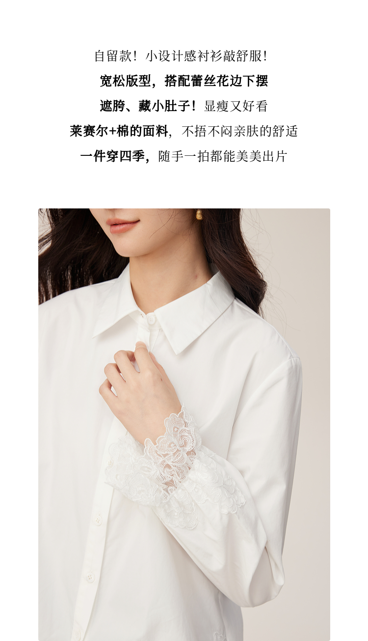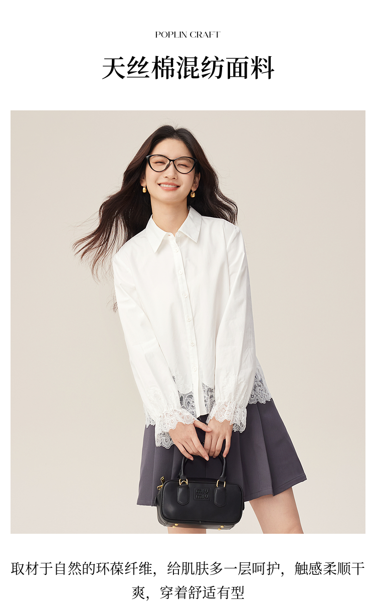 【09/03新品】熙世界法式蕾丝拼接白色衬衫女设计感长袖天丝棉上衣2025秋季新款