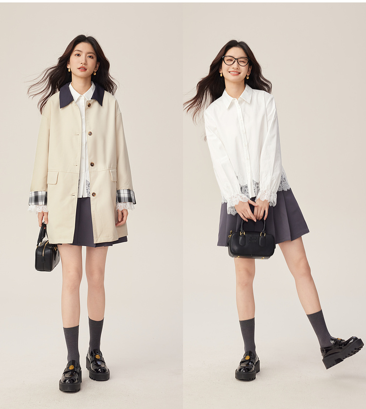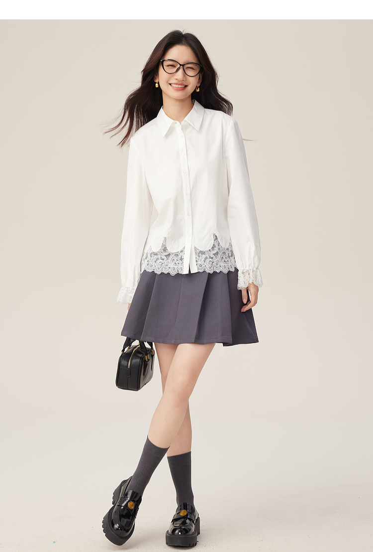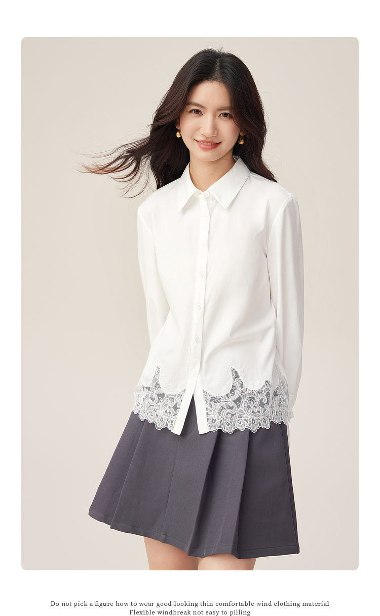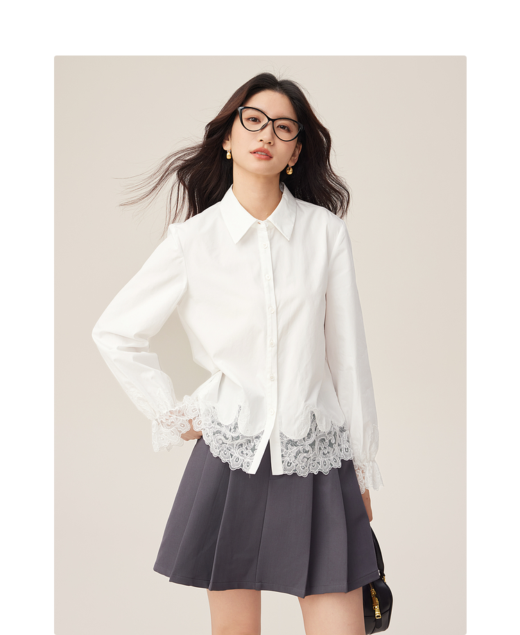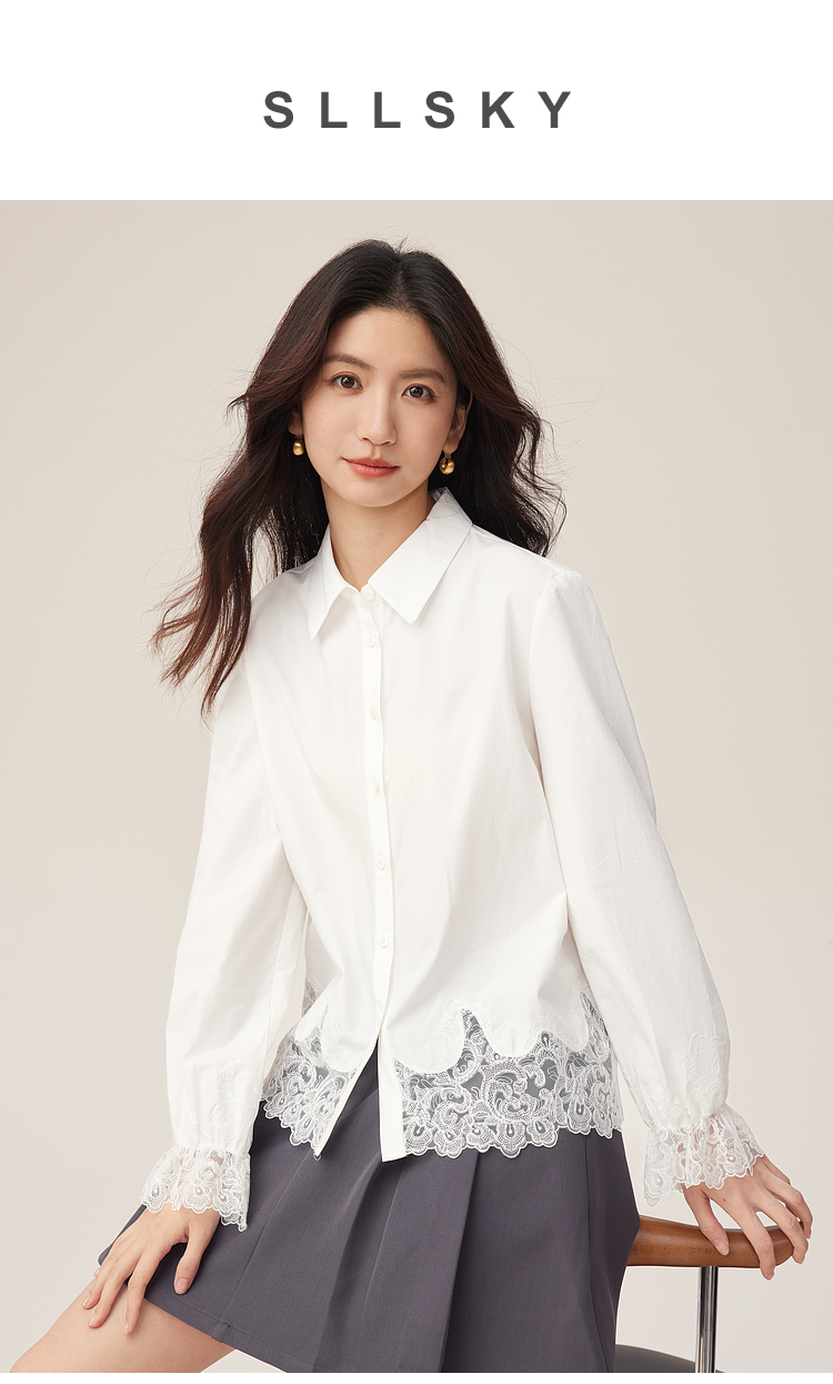 【09/03新品】熙世界法式蕾丝拼接白色衬衫女设计感长袖天丝棉上衣2025秋季新款