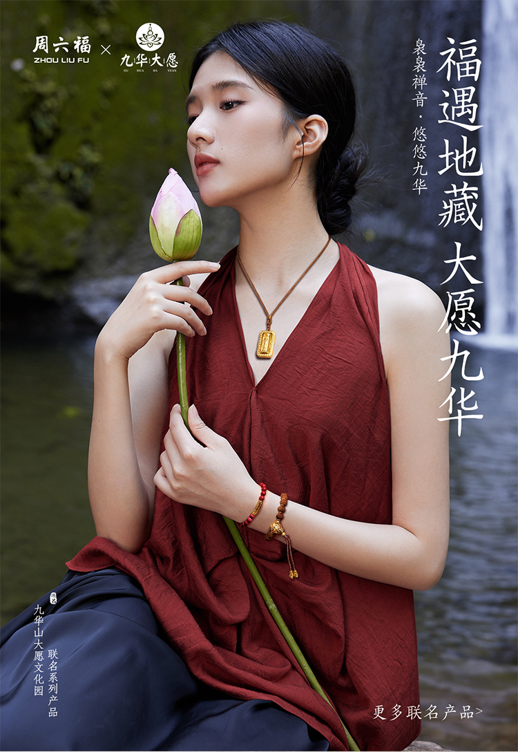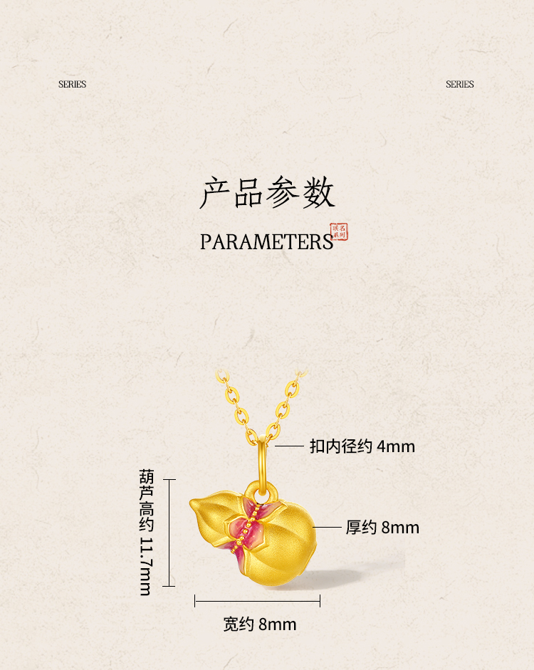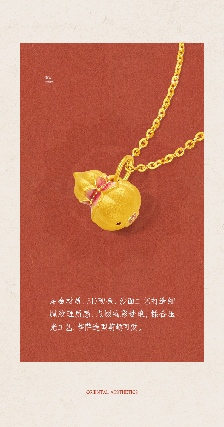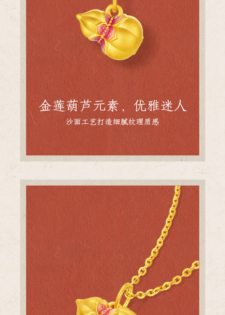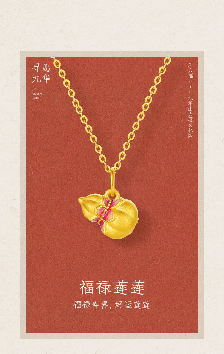 周六福黄金吊坠女款5d硬金定价九华山系列福禄莲莲金葫芦吊坠礼物