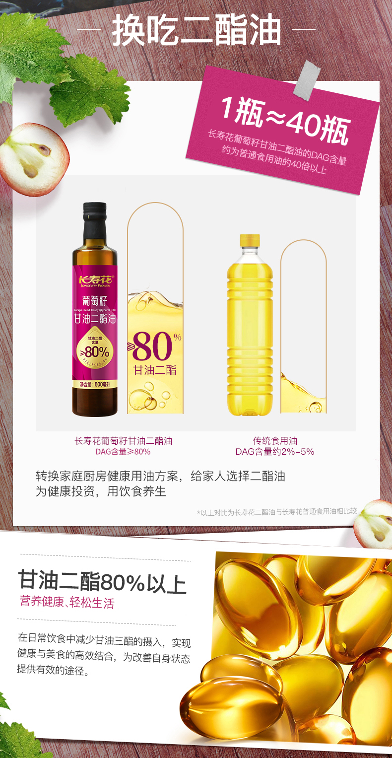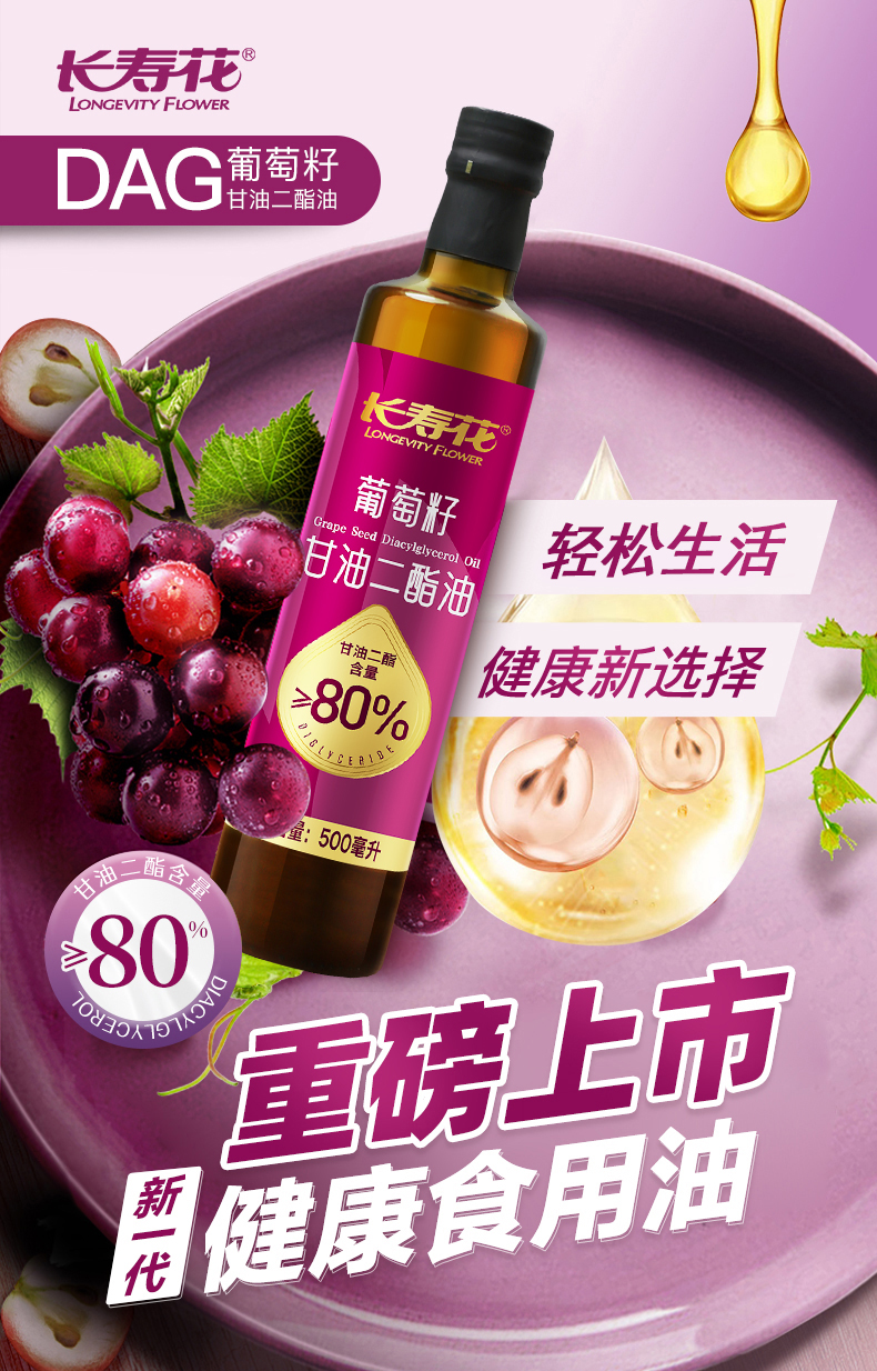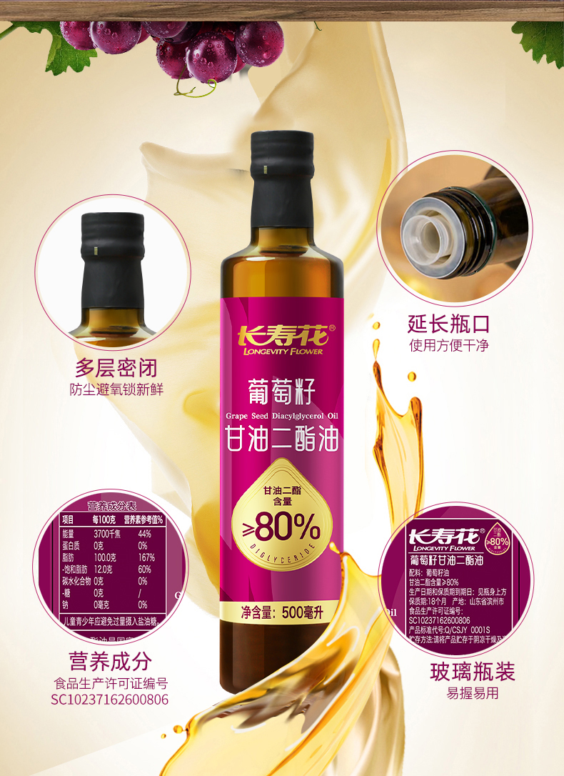 长寿花轻酯甘油二酯油80%DAG含量 500mL 葡萄籽油 二酯油 顺丰包邮