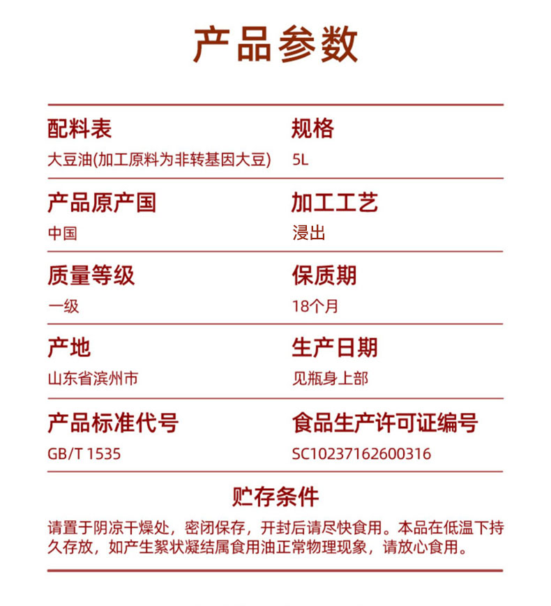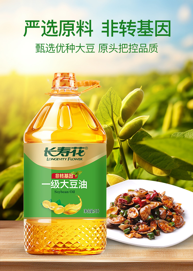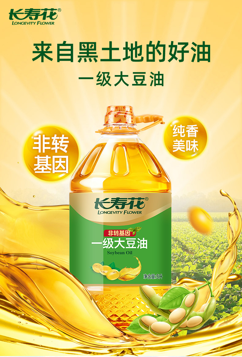 长寿花浓香非转基因豆香浓郁 非转基因 压榨大豆油5L